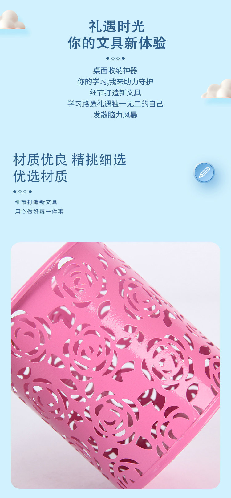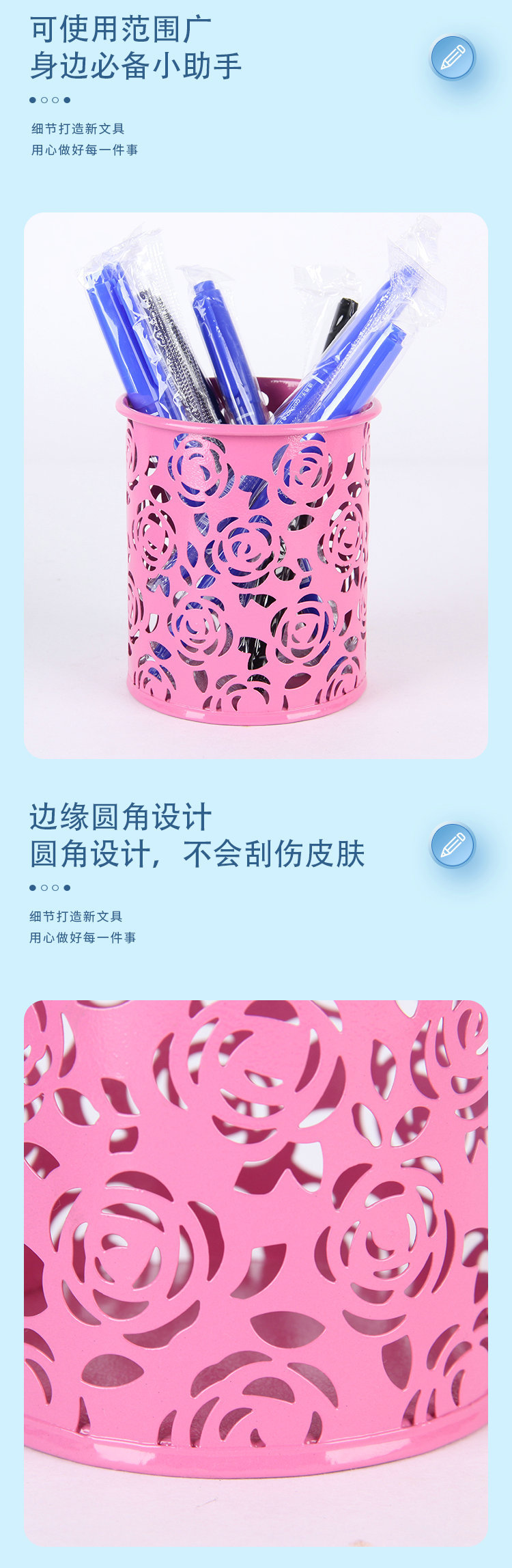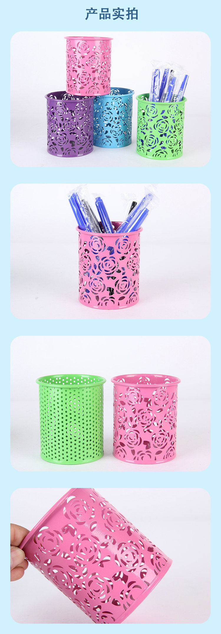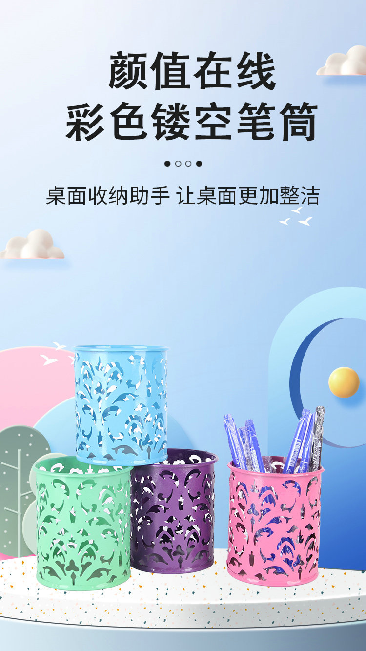 컬러 아름다운 연철 창조적 인 라운드 다기능 사무실 문구 보관 데스크탑 마무리 장식품 금속 펜 홀더