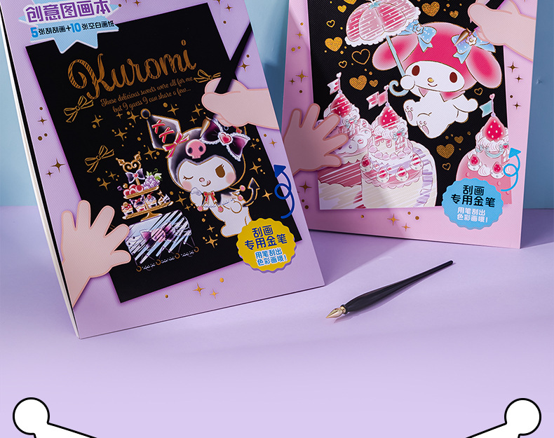 Iigen 하나는 문구 산리오 이미지 그림책 어린이 diy 스크래치 그림 창조적 인 낙서 예술 스크래치 책입니다.