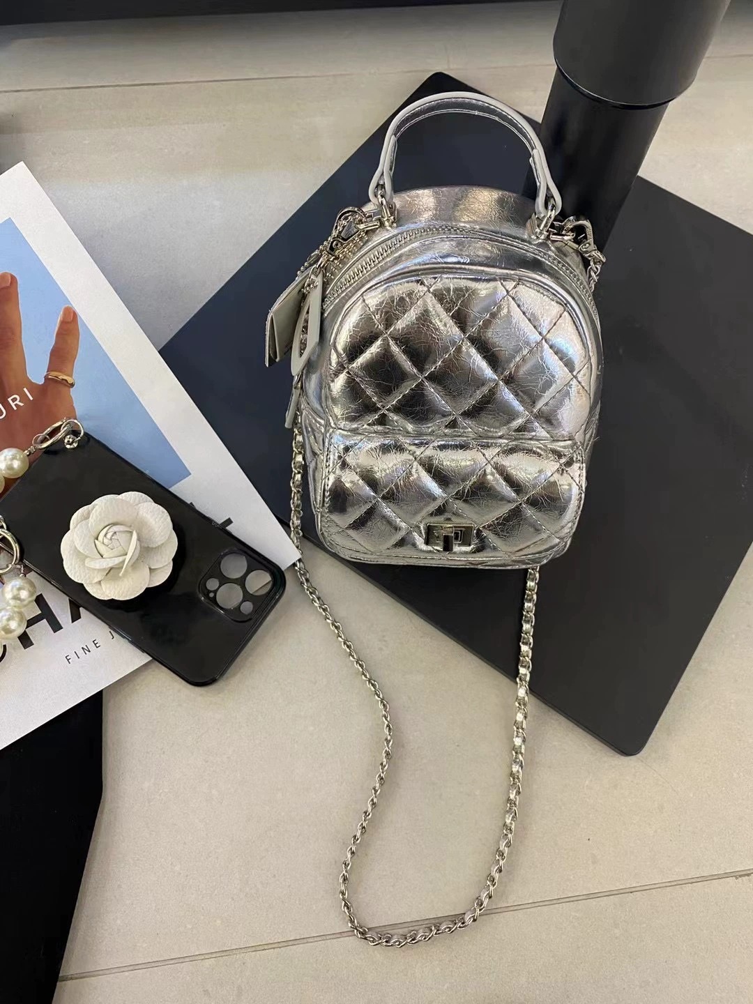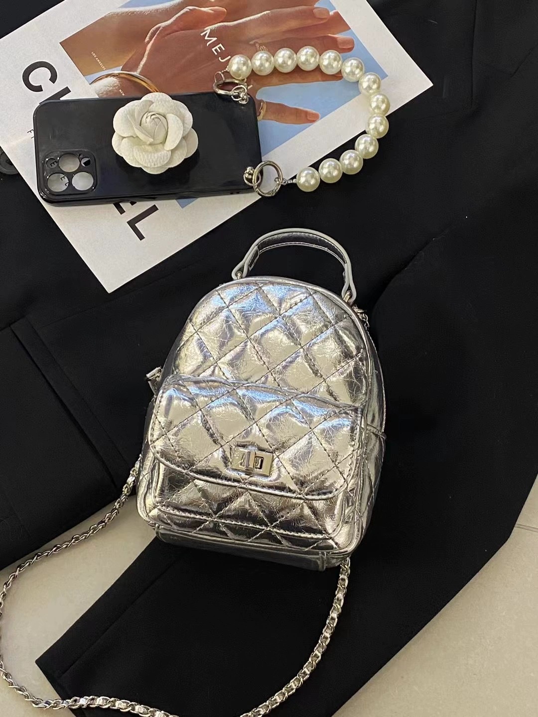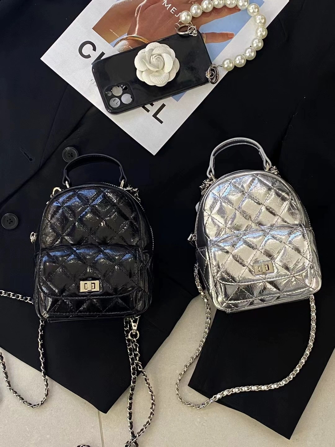 여름 미니 Rhomboid 체인 배낭 여성의 2024 새로운 캐주얼 패션 하이 엔드 미니 작은 배낭 Schoolbag