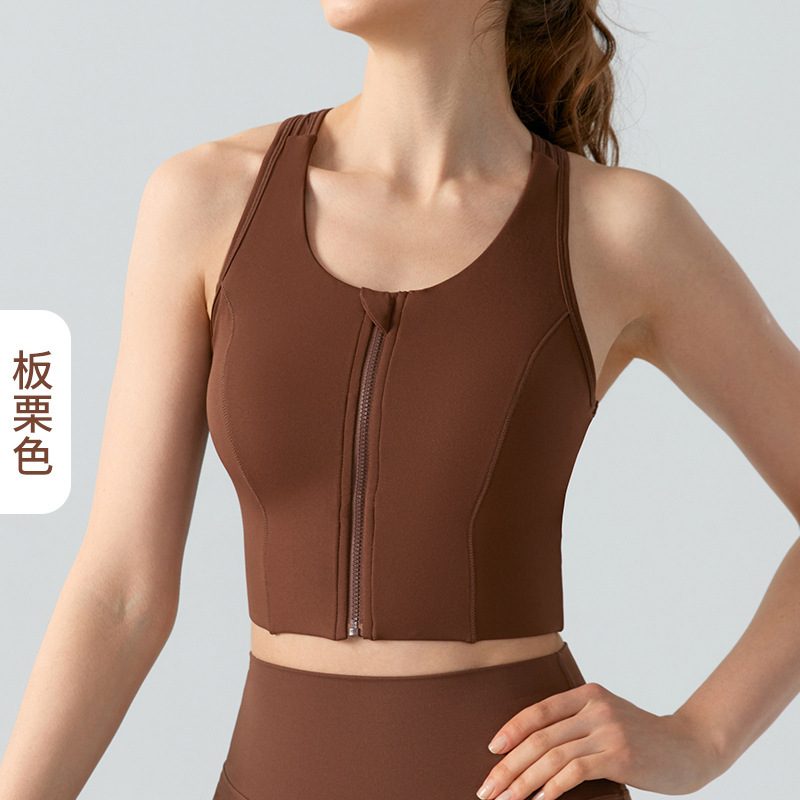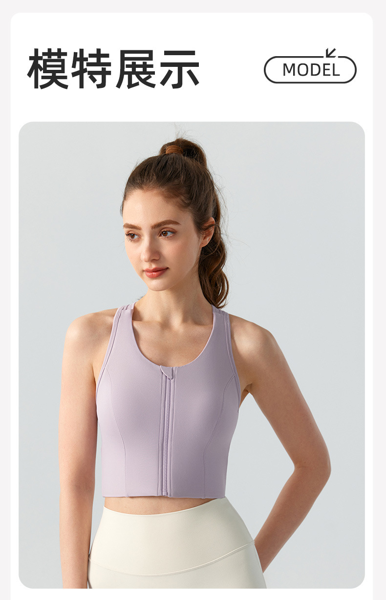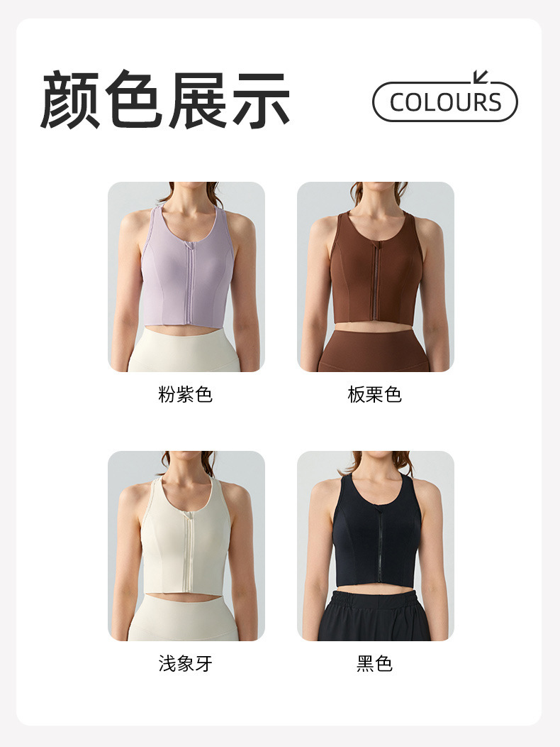 여성용 고강도 스포츠 브라, 충격 방지, 가슴 보정, 스포츠 조끼, 패드 내장, 앞지퍼, 피트니스 요가 조끼, 여름용스토어 가기