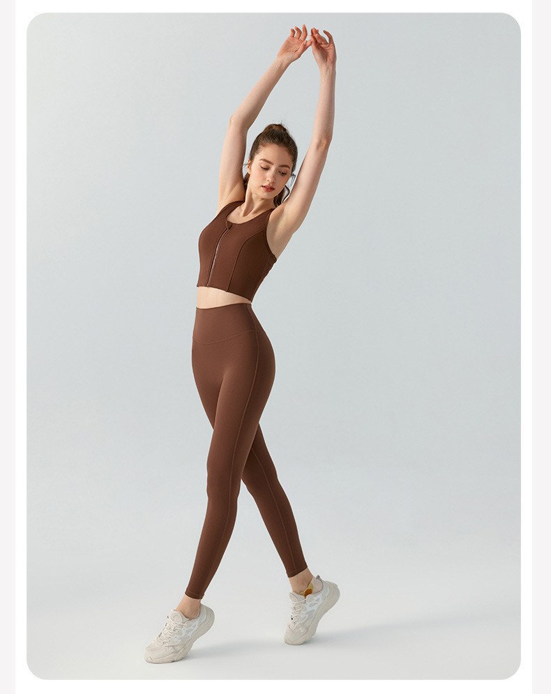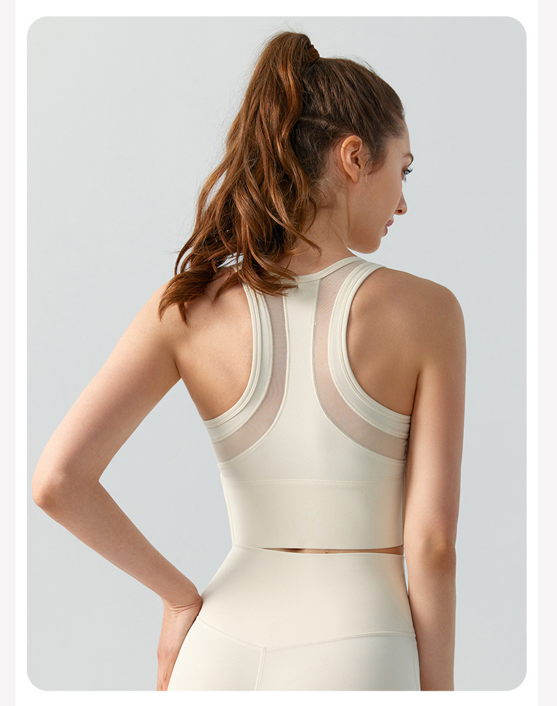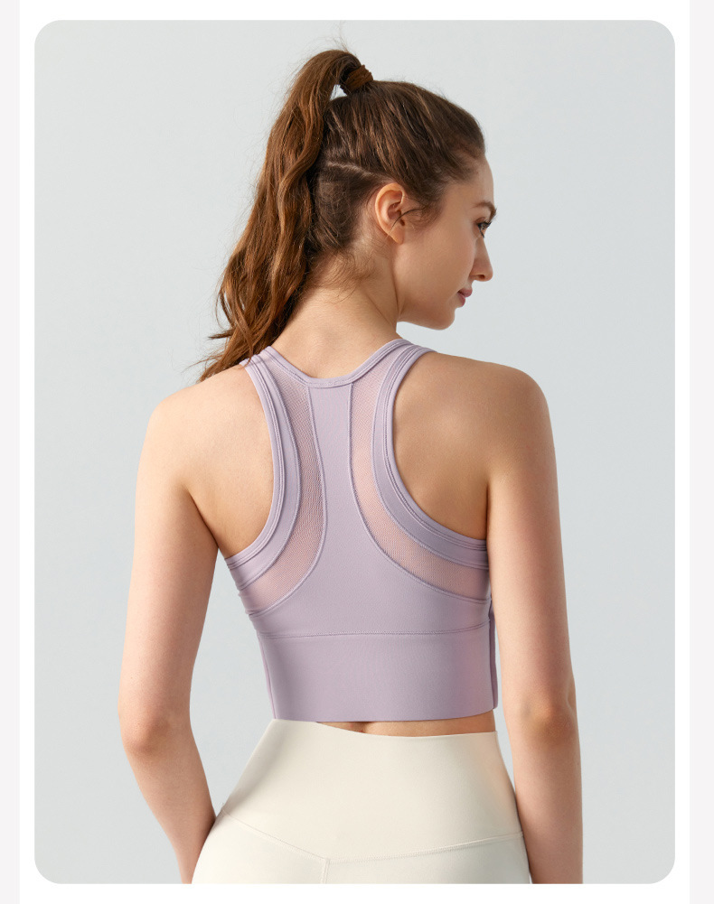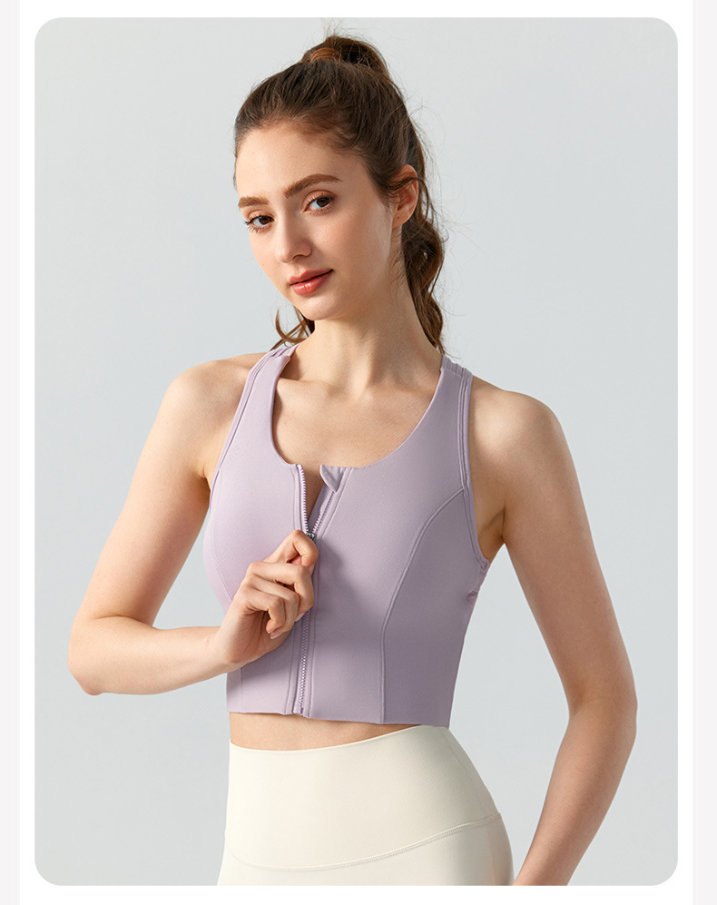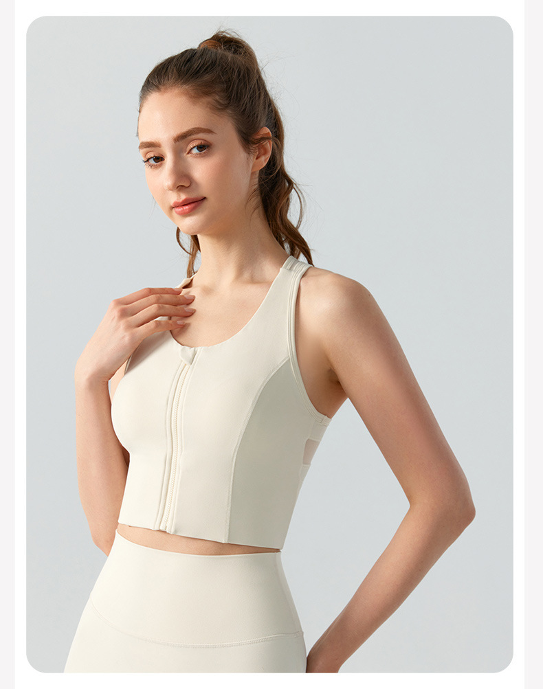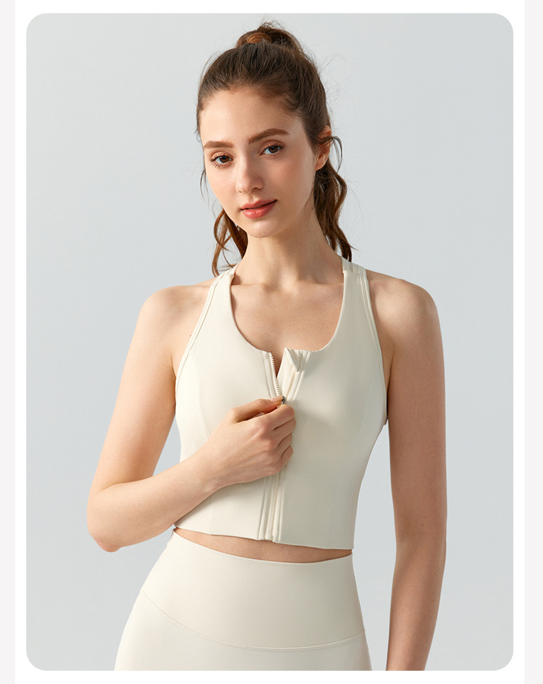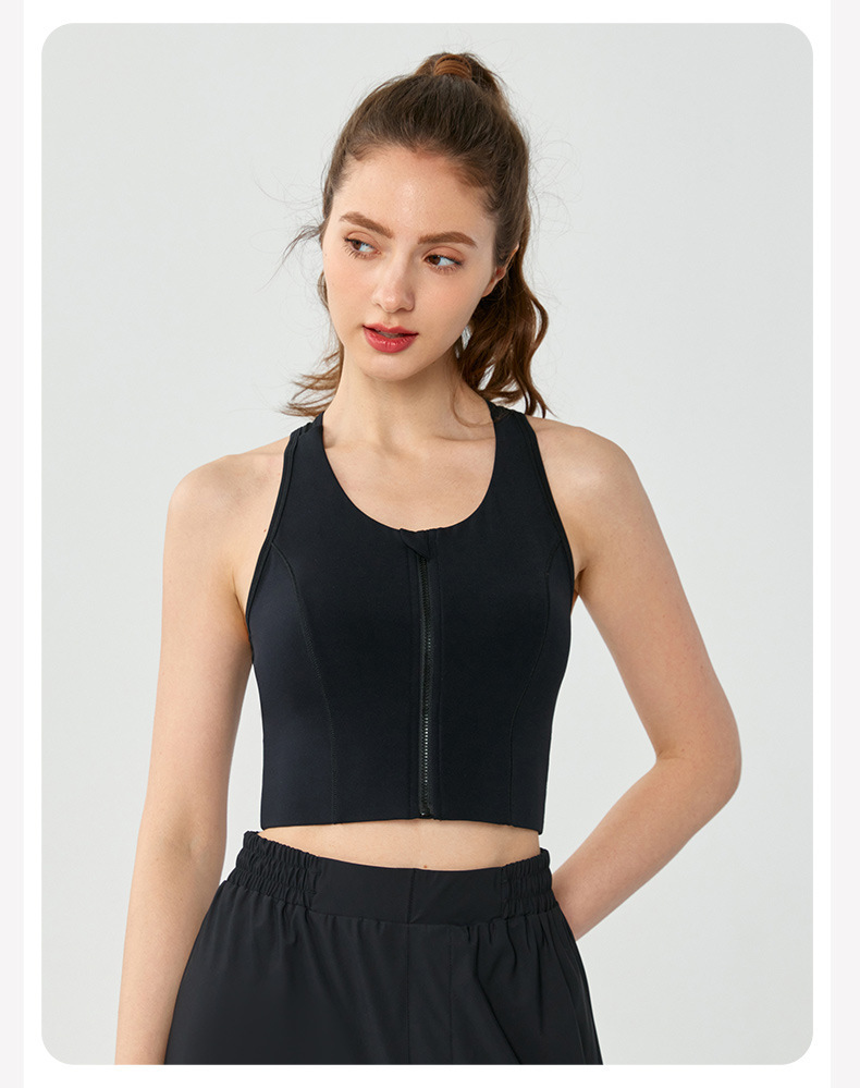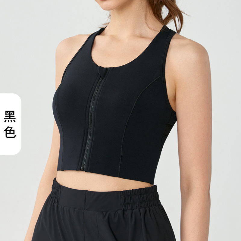 여성용 고강도 스포츠 브라, 충격 방지, 가슴 보정, 스포츠 조끼, 패드 내장, 앞지퍼, 피트니스 요가 조끼, 여름용