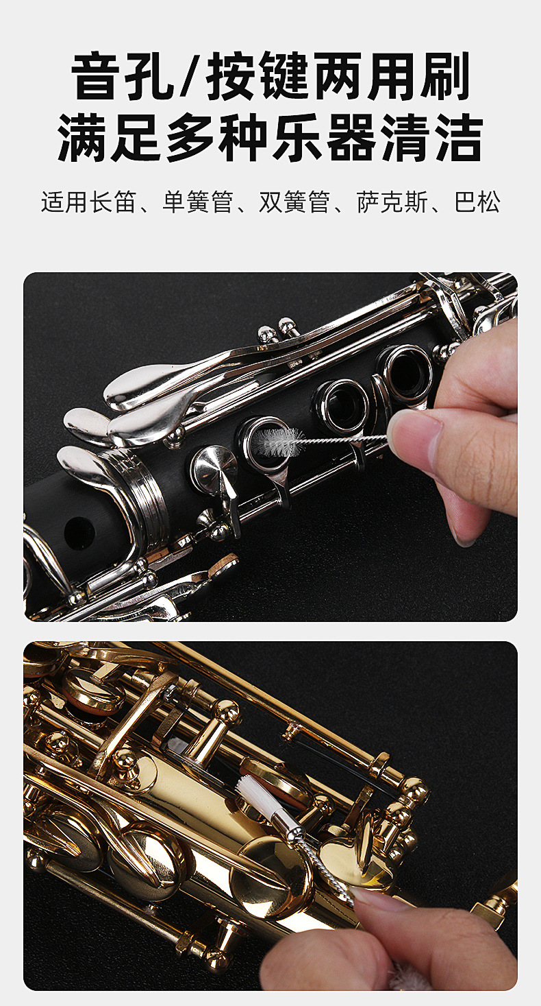 플루트 클라리넷 색소폰 버튼 브러시 톤 홀 브러시 관악기 플루트 헤드 브러시 청소 브러시 브러시 악기 액세서리