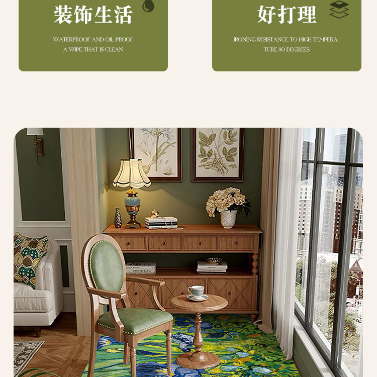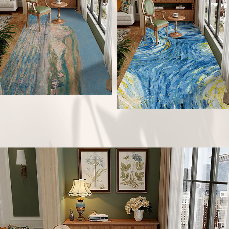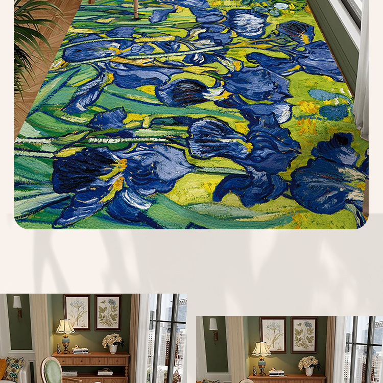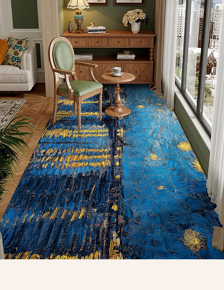 반 고흐 발코니 바닥 매트 전체 pvc 가죽 발 매트 방수 닦아 낼 수있는 빨 수있는 게으른 카펫 도매 예술 디자인스토어 가기