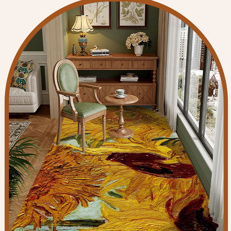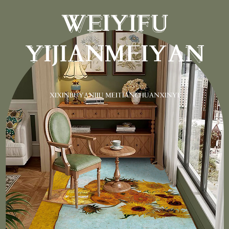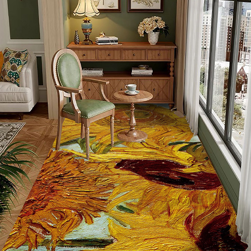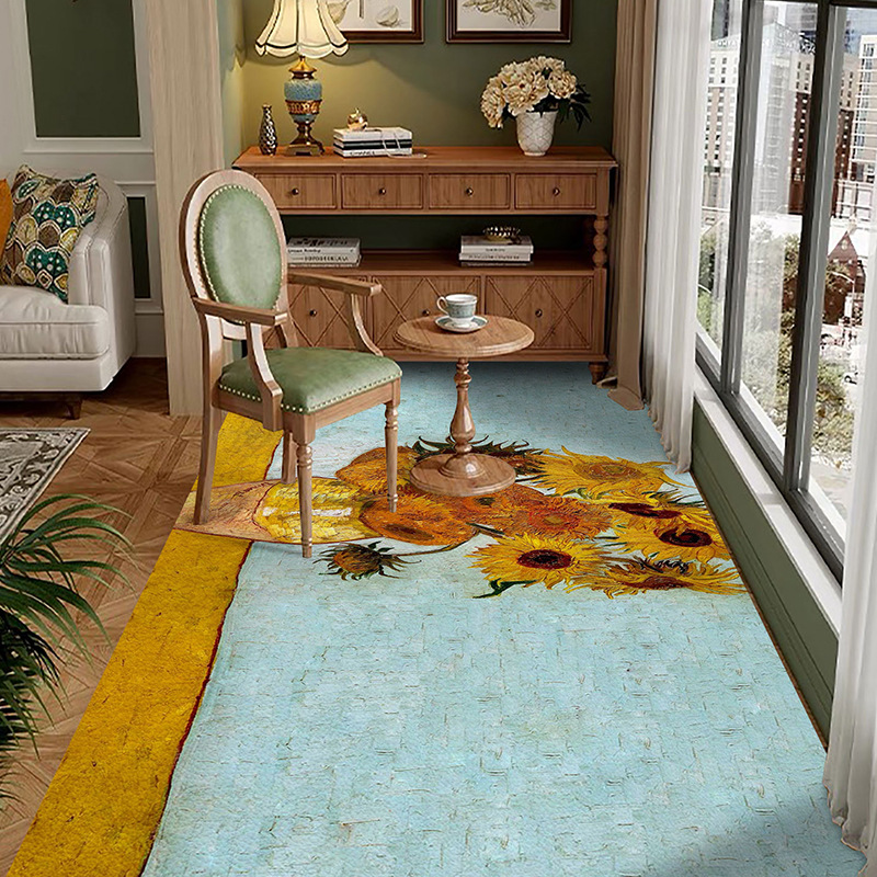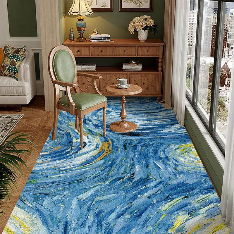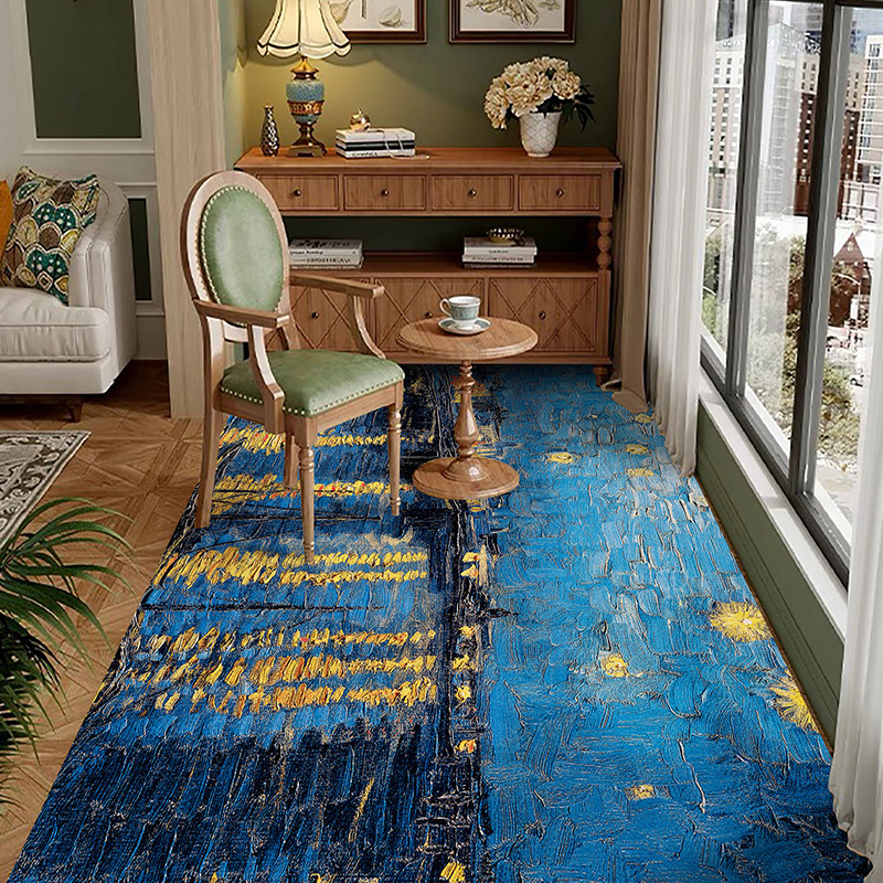 반 고흐 발코니 바닥 매트 전체 pvc 가죽 발 매트 방수 닦아 낼 수있는 빨 수있는 게으른 카펫 도매 예술 디자인