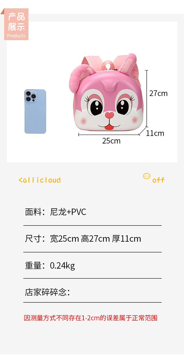 국경 간 유치원 Schoolbag 새로운 귀여운 만화 토끼 달걀 배낭 3-6 년 된 대용량 어린이 가방