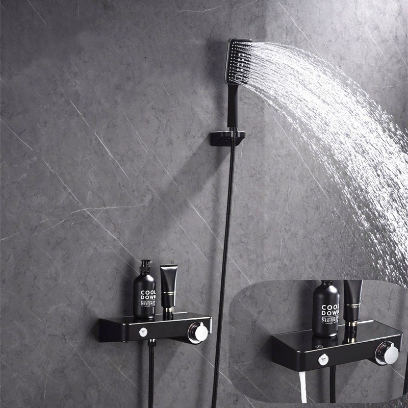 현대 간단한 욕조 버튼 가정용 모든 구리 벽걸이 저장 테이블 비 샤워 헤드 샤워 세트