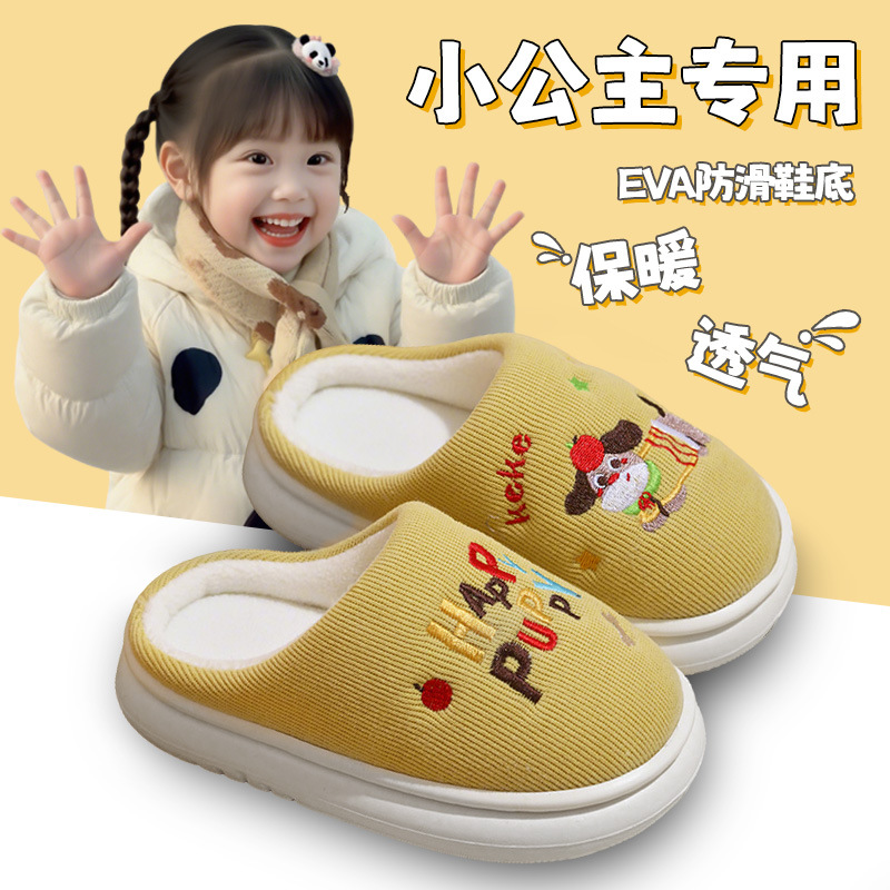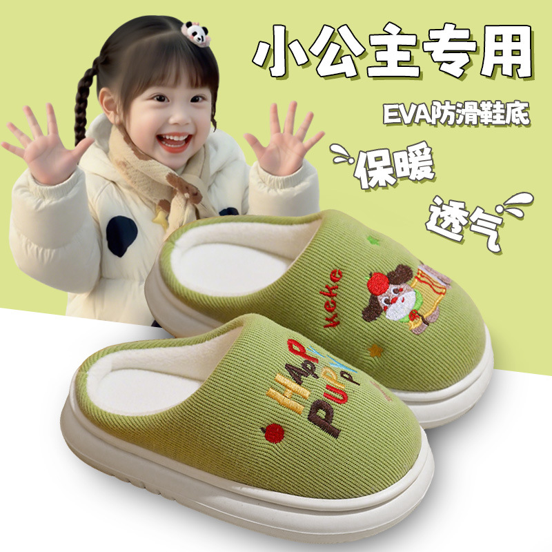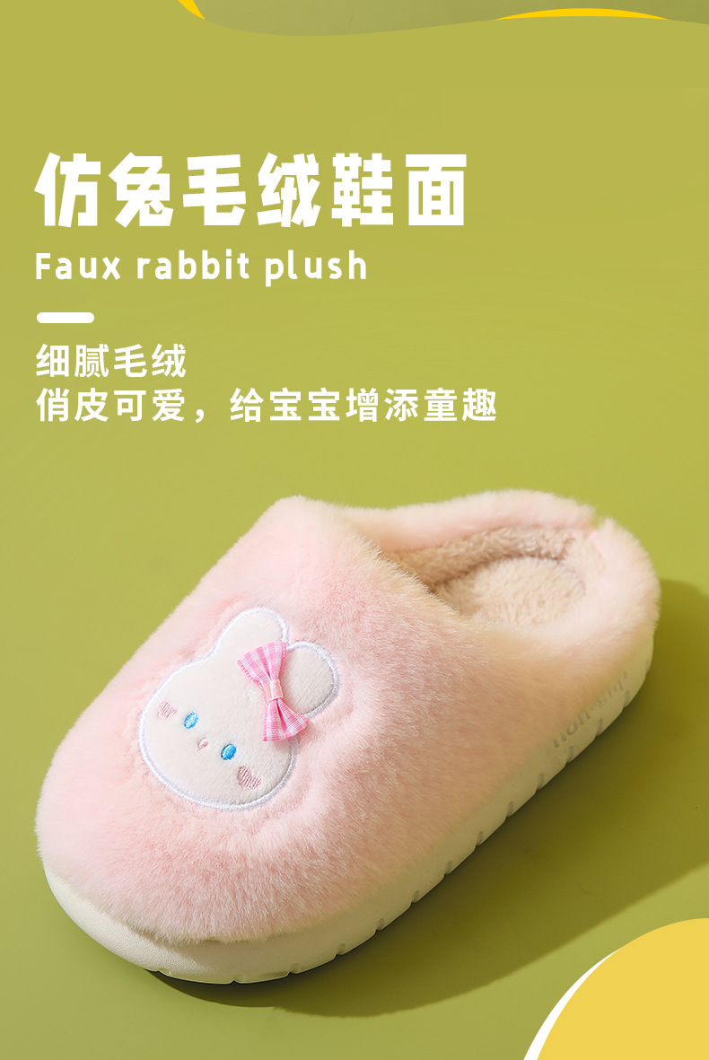 남학생과 여학생을위한 겨울 어린이 면화 슬리퍼 따뜻한 미끄럼 방지 기모 중소형 어린이 아기 마오 마오 면화 슬리퍼가 달린 부모 가방스토어 가기