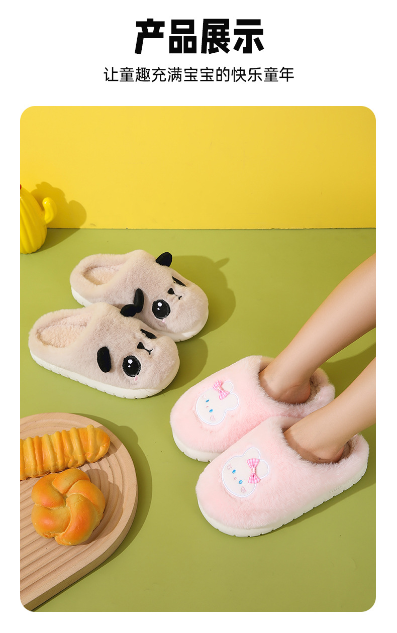 남학생과 여학생을위한 겨울 어린이 면화 슬리퍼 따뜻한 미끄럼 방지 기모 중소형 어린이 아기 마오 마오 면화 슬리퍼가 달린 부모 가방