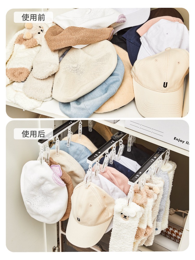 푸시 풀 모자 저장 유물 보관 선반 아기 속옷 속옷 양말 스카프 옷걸이 벽 교수형 아기 클립