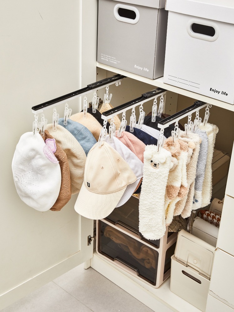 푸시 풀 모자 저장 유물 보관 선반 아기 속옷 속옷 양말 스카프 옷걸이 벽 교수형 아기 클립스토어 가기