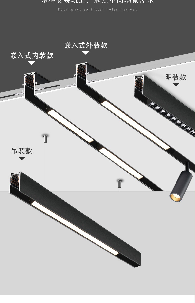 메인 램프가없는 Qifan 지능형 자기 매력 led 자기 매력 트랙 램프 제조업체 임베디드 트랙 램프 라인 램프 스포트라이트스토어 가기