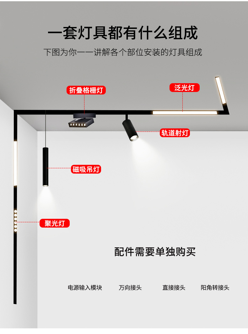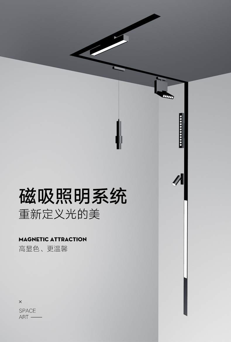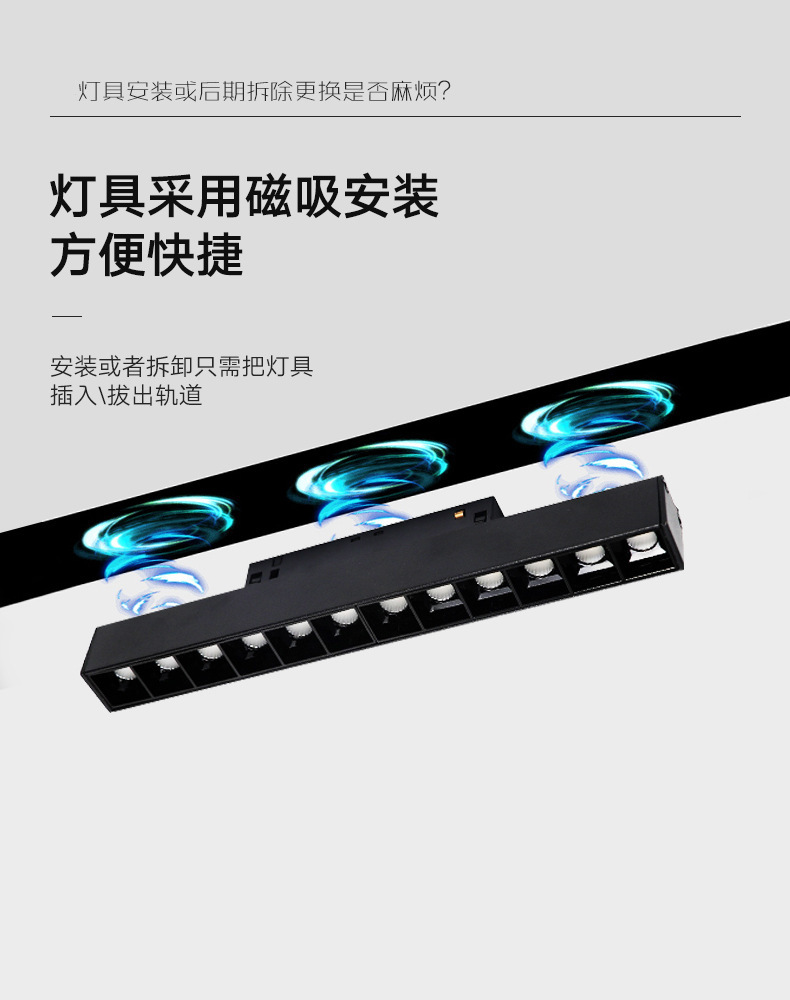 메인 램프가없는 Qifan 지능형 자기 매력 led 자기 매력 트랙 램프 제조업체 임베디드 트랙 램프 라인 램프 스포트라이트