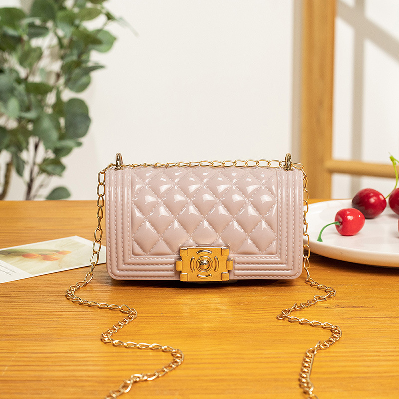 2024 여름 새로운 PVC Rhomboid 체인 젤리 백 여성용 크로스 바디 백 숄더 백 마카롱 컬러 미니