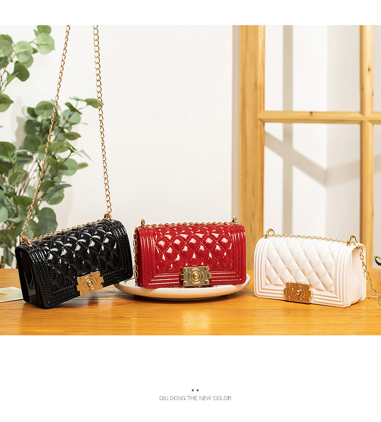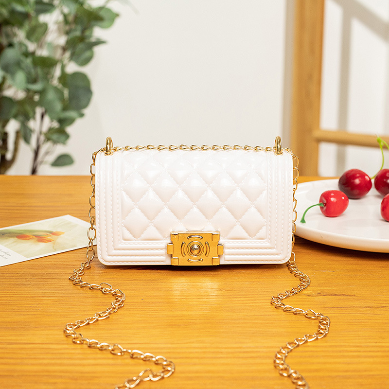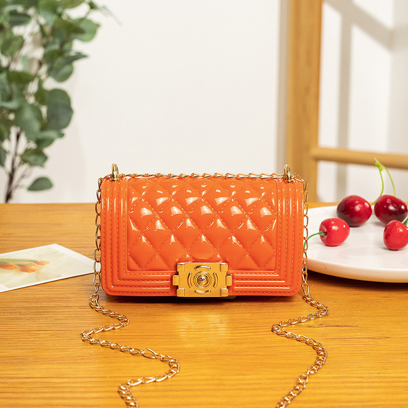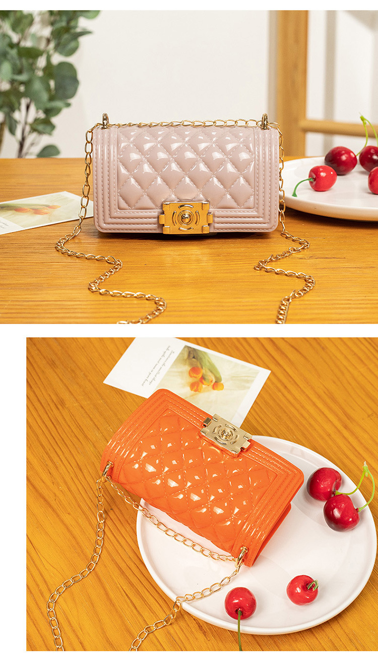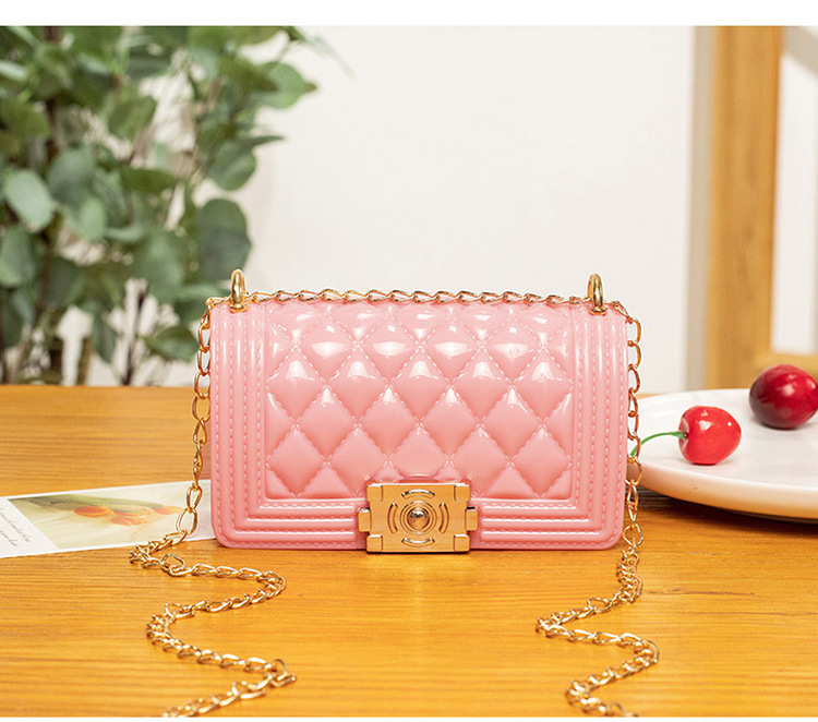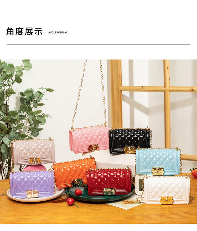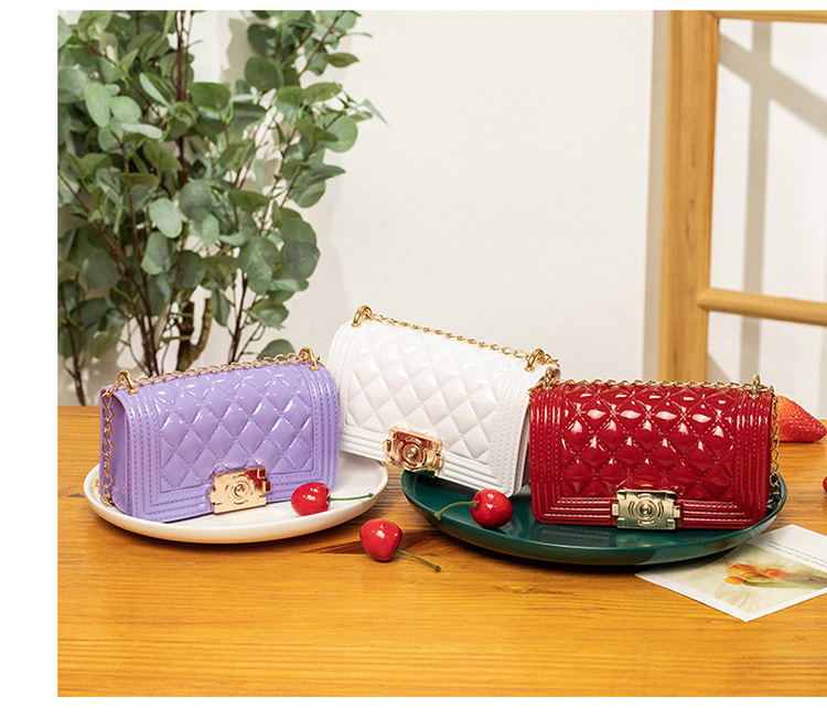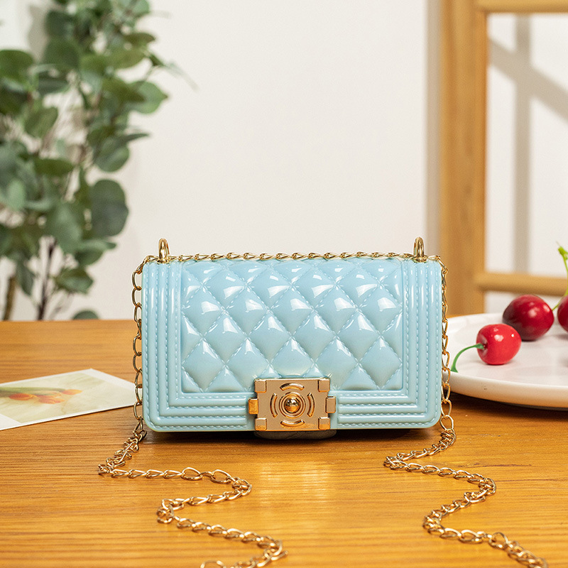 2024 여름 새로운 PVC Rhomboid 체인 젤리 백 여성용 크로스 바디 백 숄더 백 마카롱 컬러 미니스토어 가기