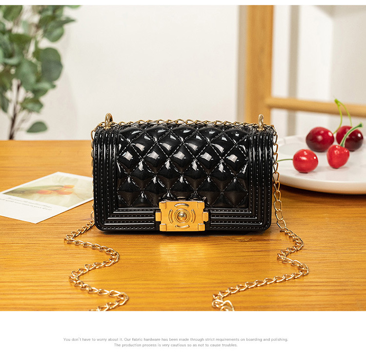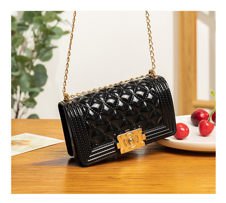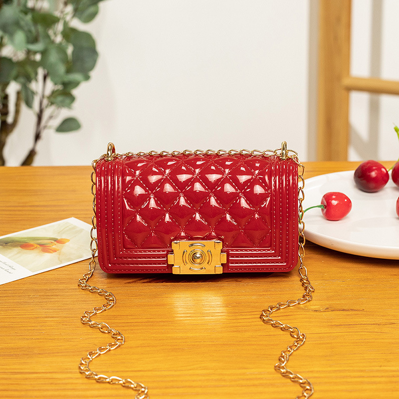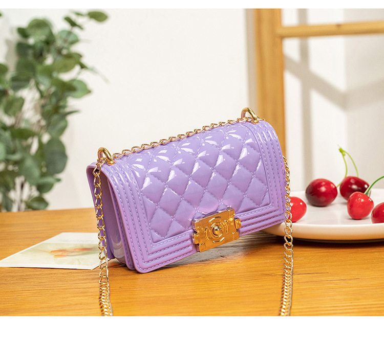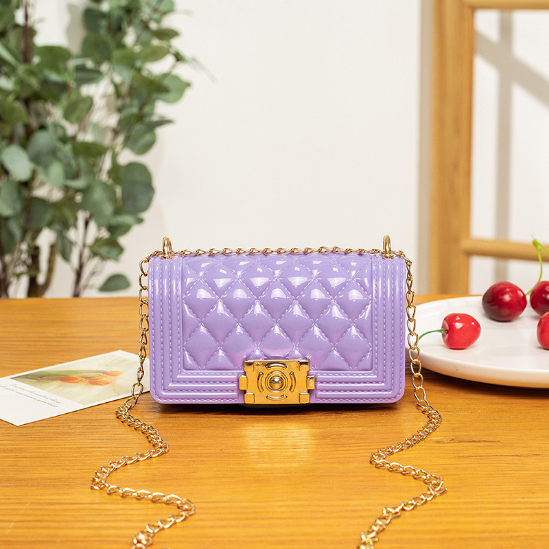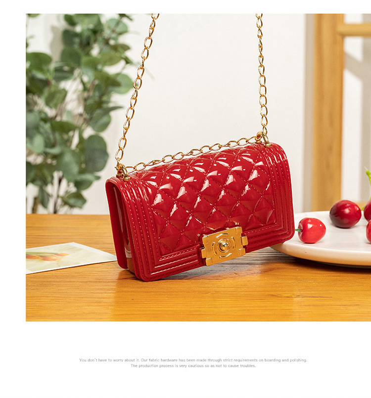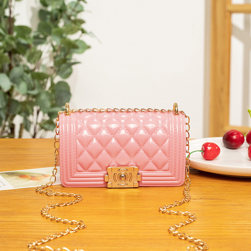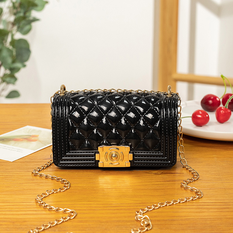 2024 여름 새로운 PVC Rhomboid 체인 젤리 백 여성용 크로스 바디 백 숄더 백 마카롱 컬러 미니스토어 가기