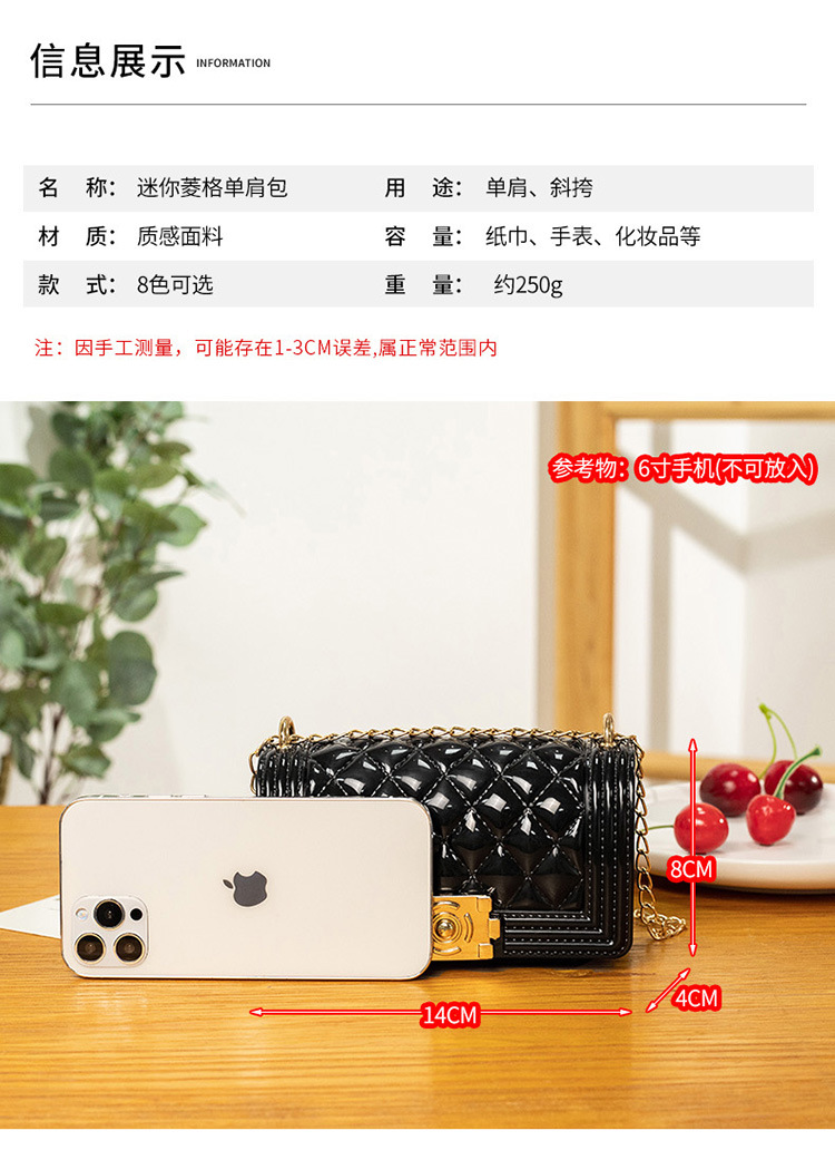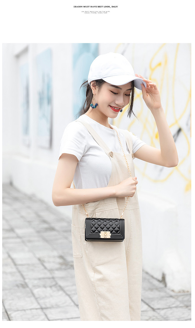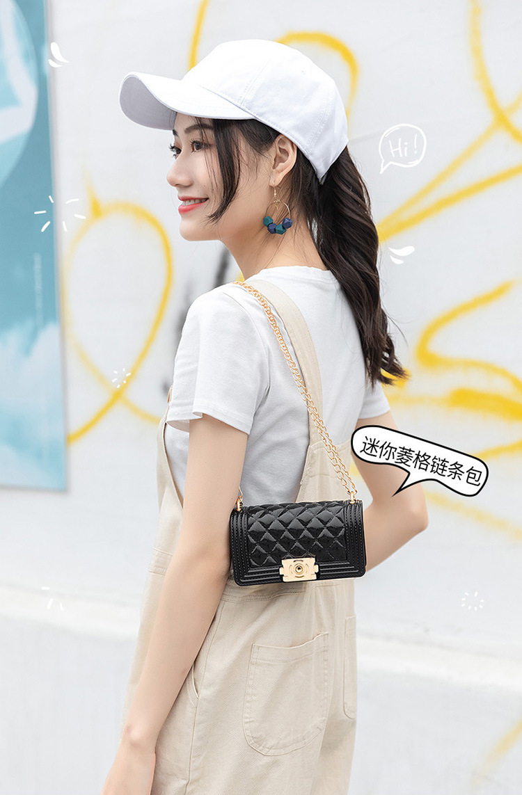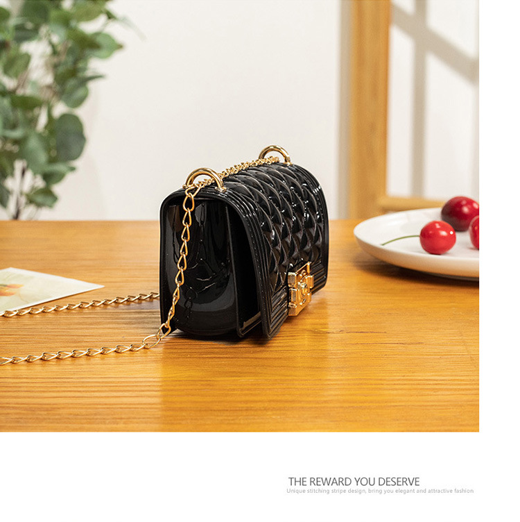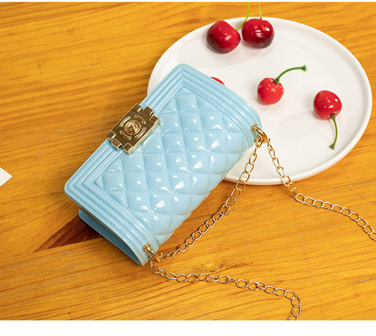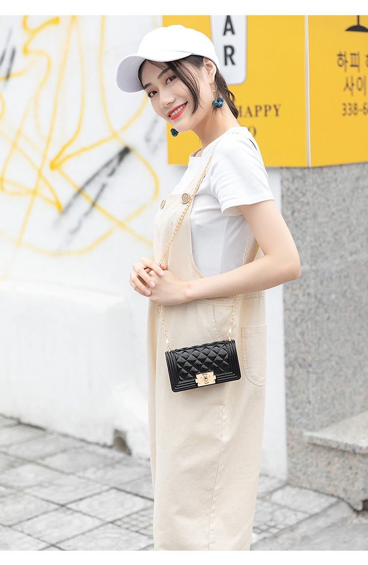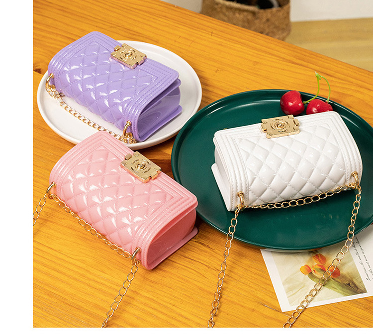 2024 여름 새로운 PVC Rhomboid 체인 젤리 백 여성용 크로스 바디 백 숄더 백 마카롱 컬러 미니스토어 가기