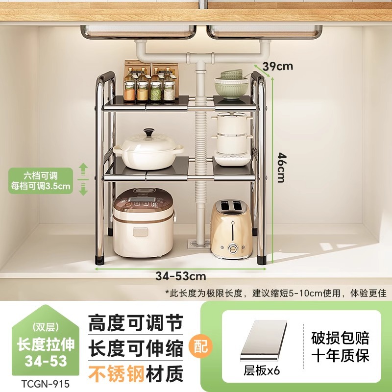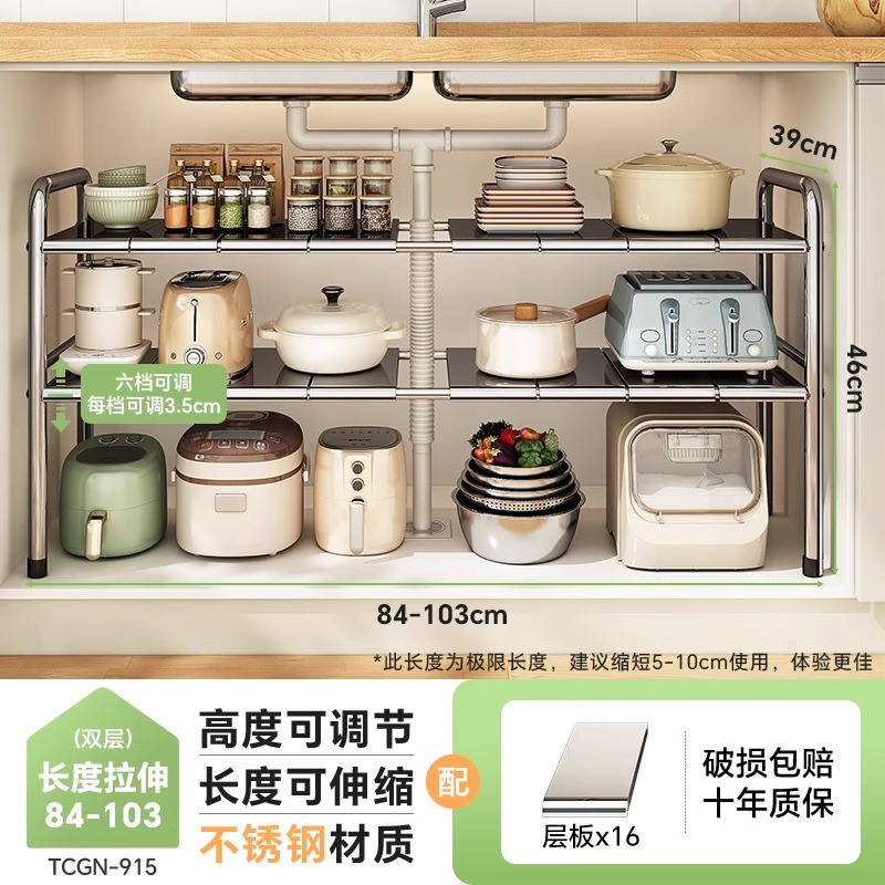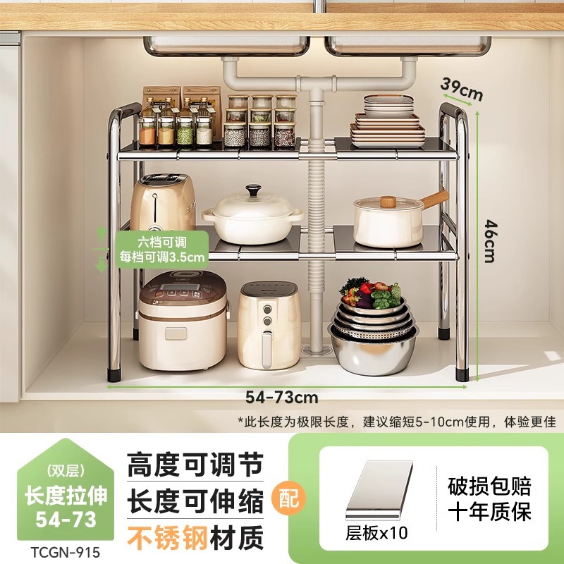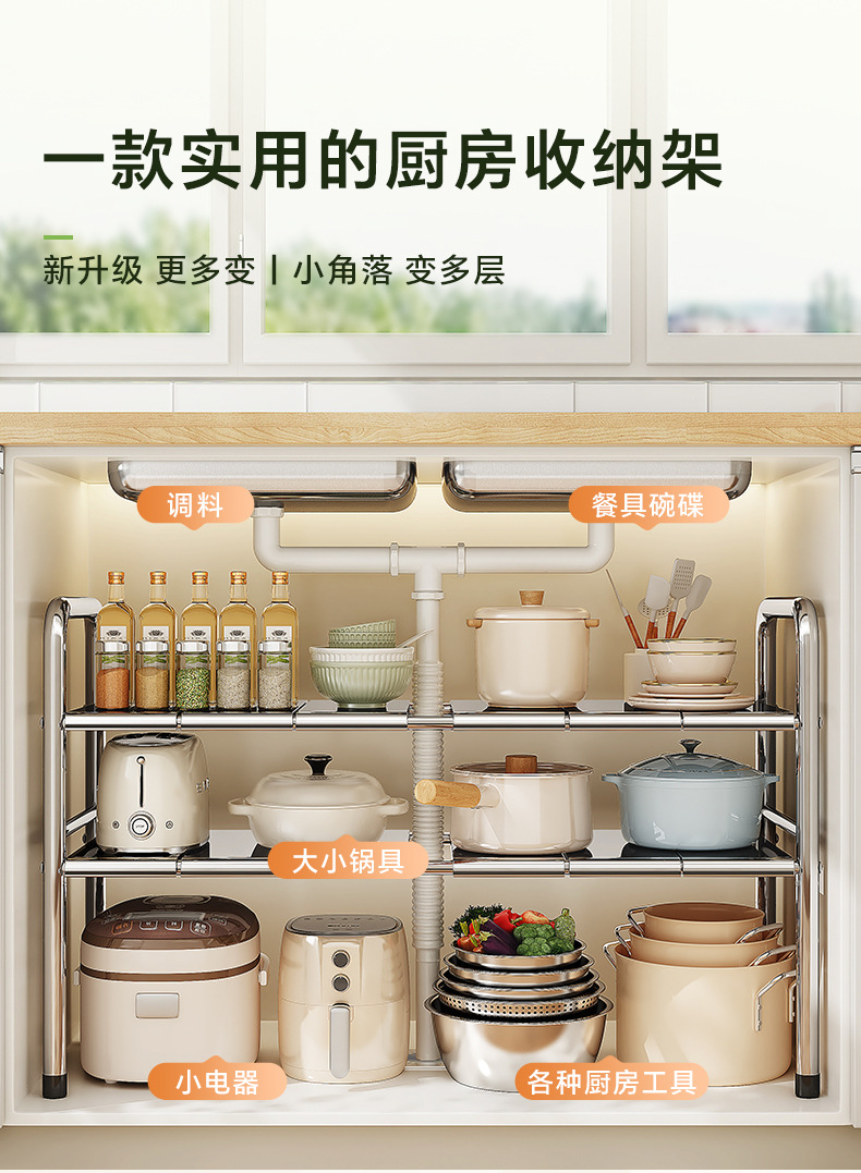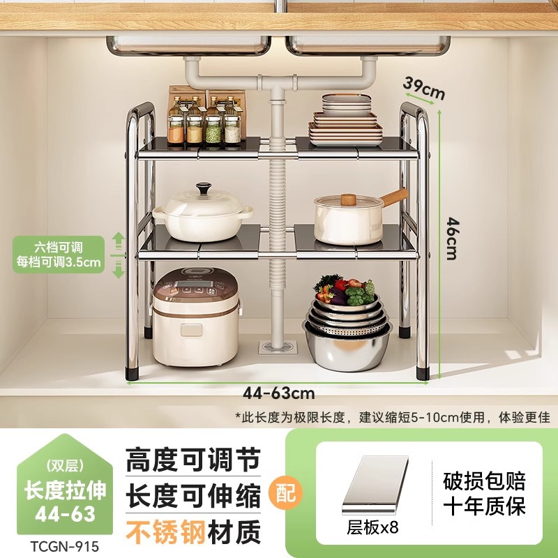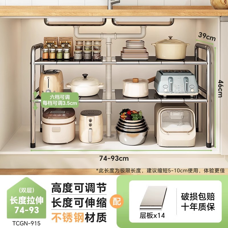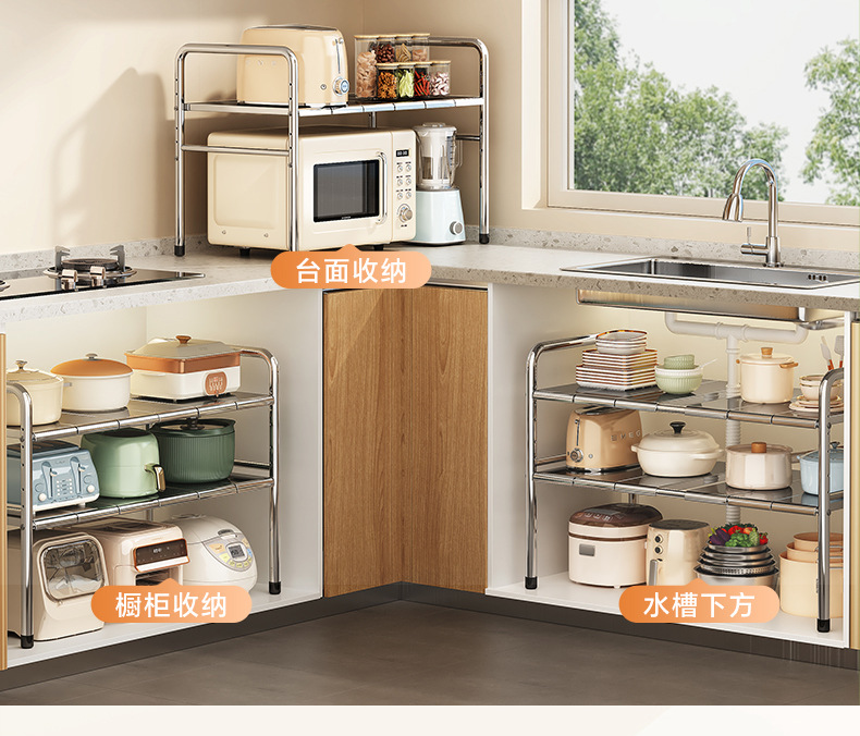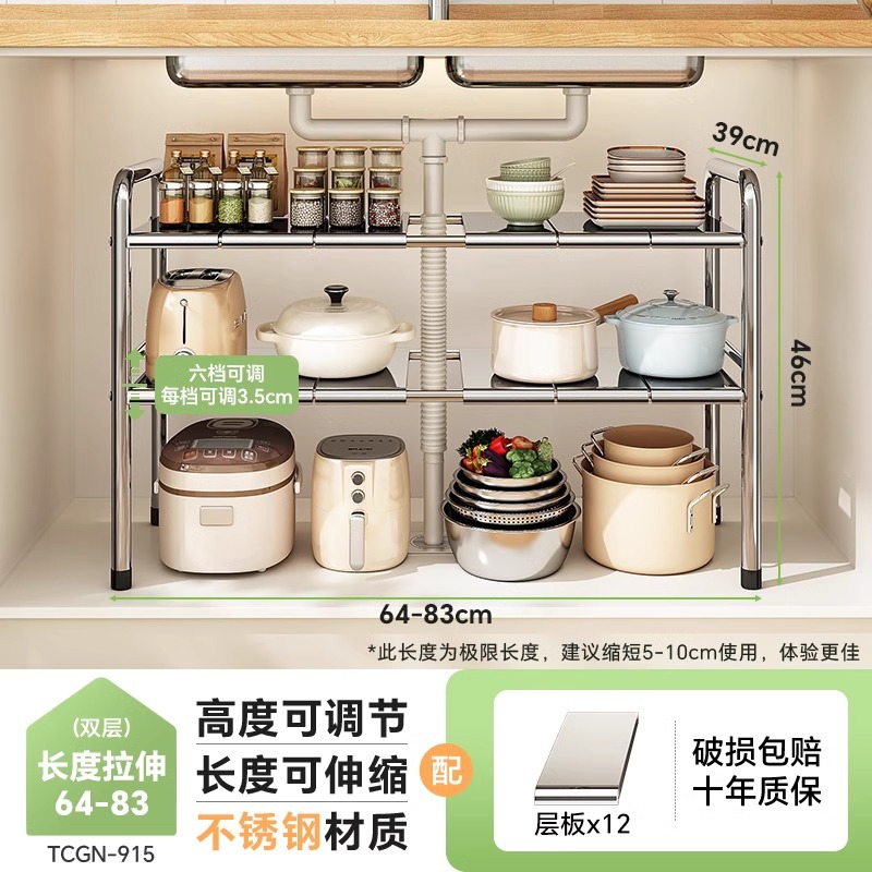 스테인레스 스틸 확장 가능한 낮은 싱크 랙 주방 캐비닛 적층 랙 다기능 마무리 냄비 저장 랙스토어 가기