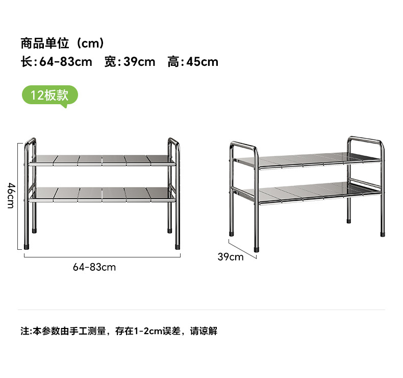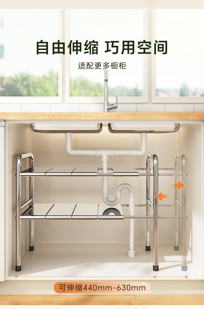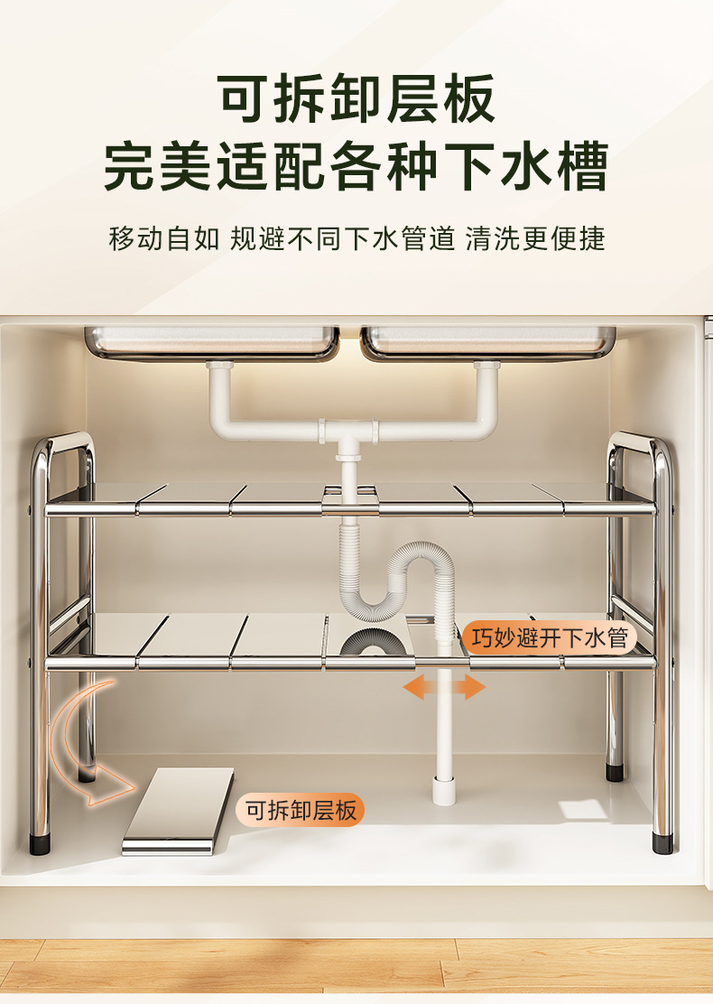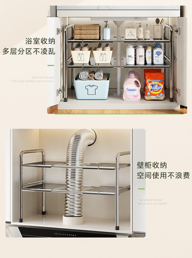 스테인레스 스틸 확장 가능한 낮은 싱크 랙 주방 캐비닛 적층 랙 다기능 마무리 냄비 저장 랙