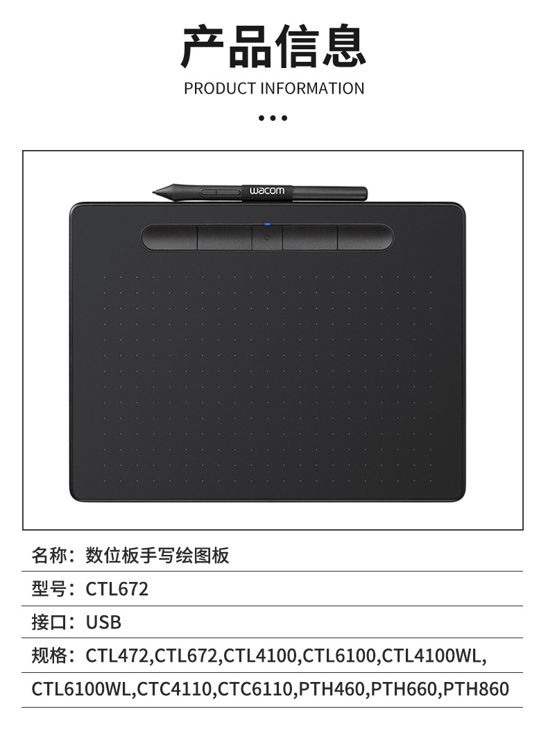 Wacom 태블릿 CTL 472 672 4100 6100 Shadow Pro PTH660 필기 드로잉 보드스토어 가기