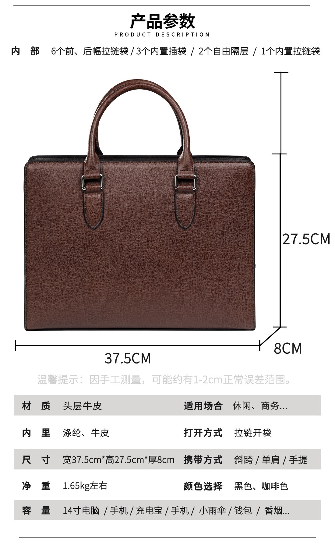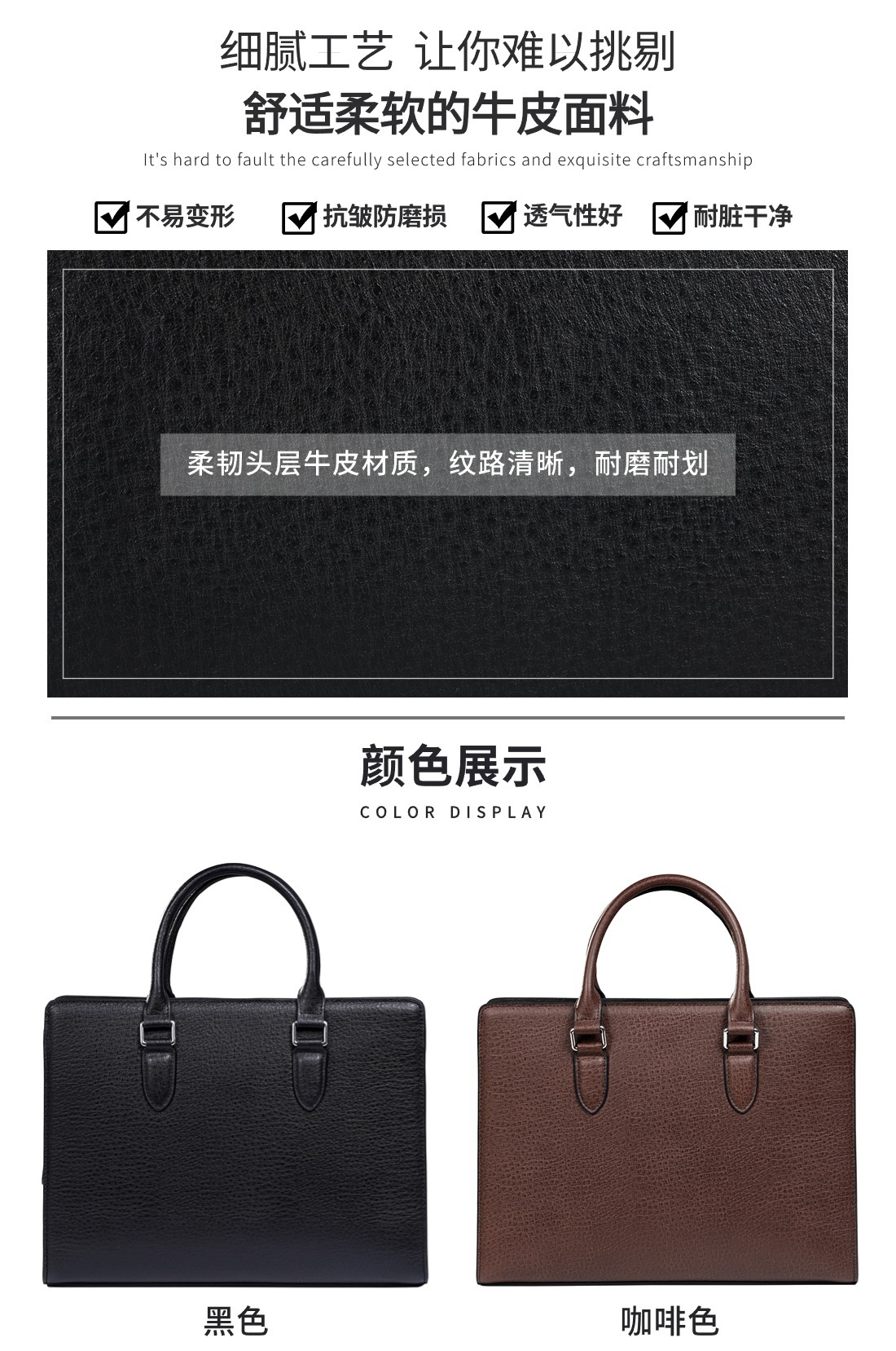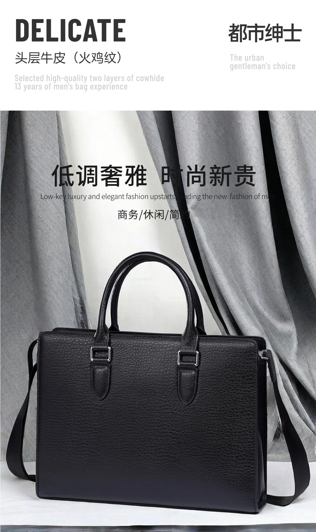 새로운 스타일의 남성용 가죽 핸드백, 1층 소가죽 비즈니스 통근 서류가방, 숄더백, 공무원 남성용 컴퓨터 가방