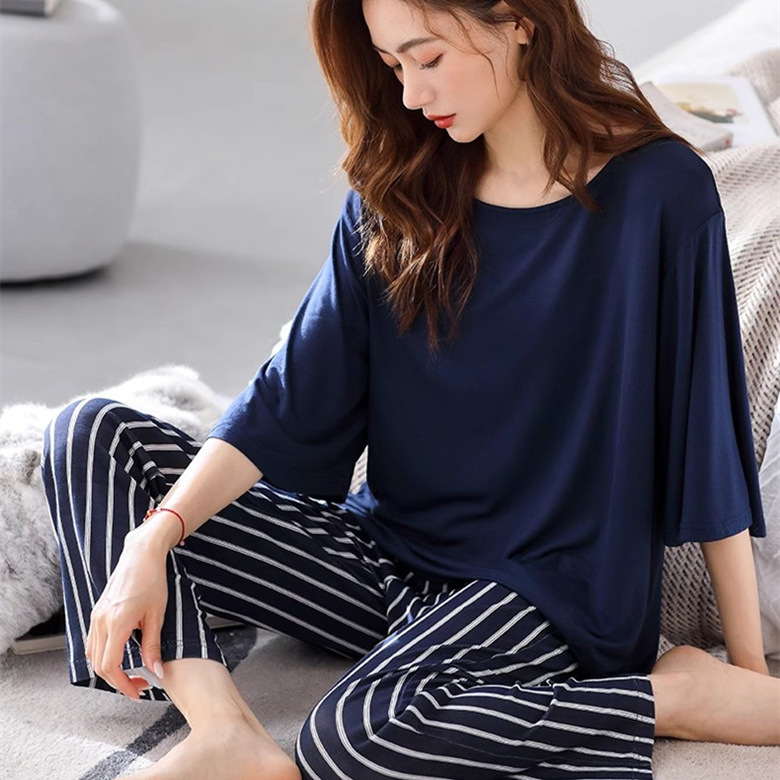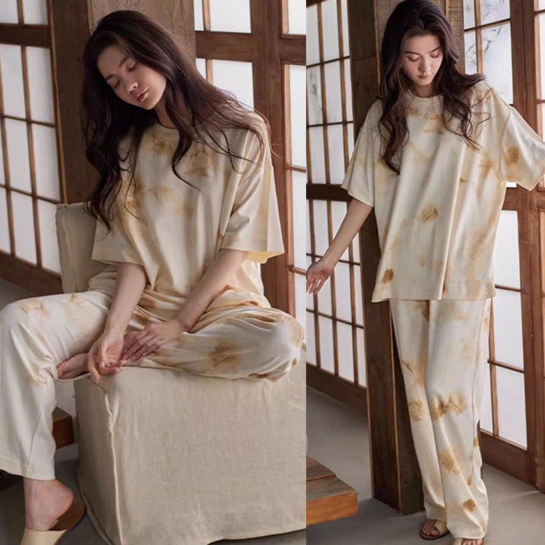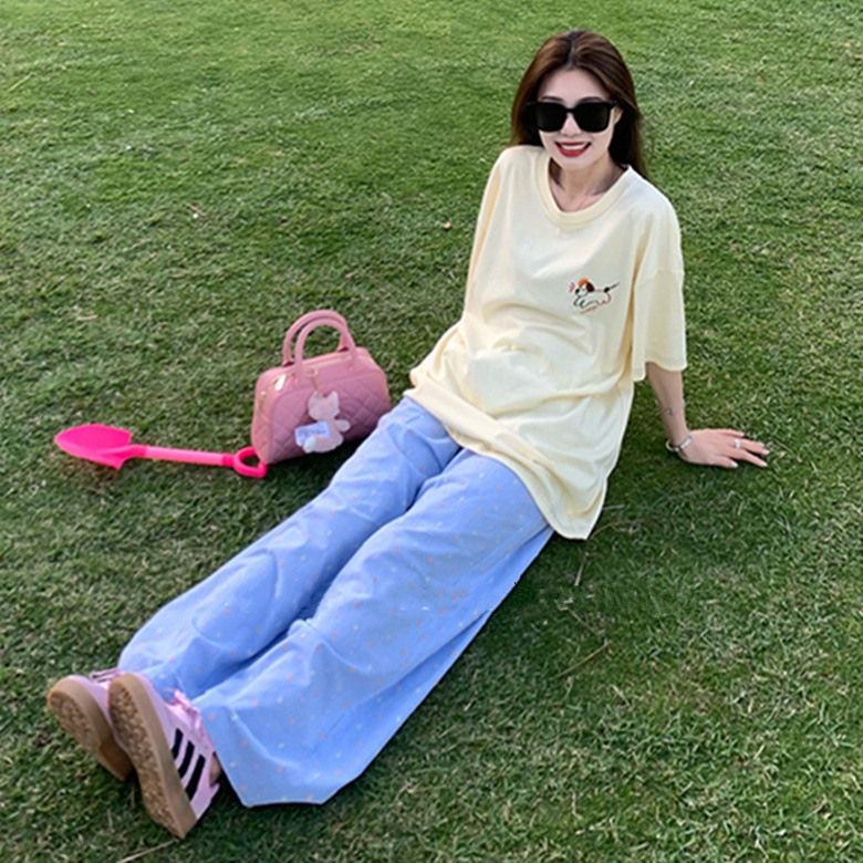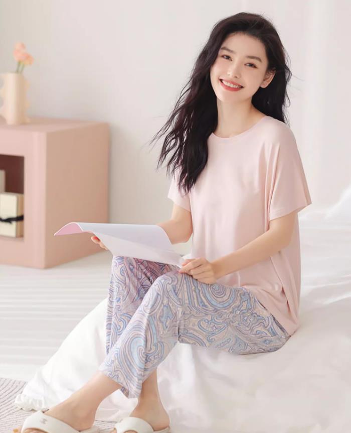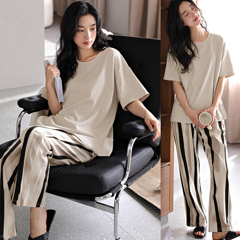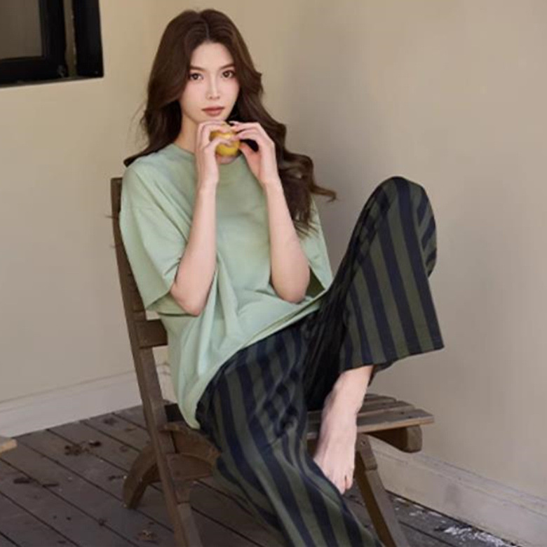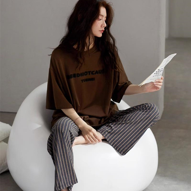 새 한국판 파자마 여성 여름 반팔 바지 세트 달콤한 만화는 소녀의 집 옷을 입을 수 있습니다.
