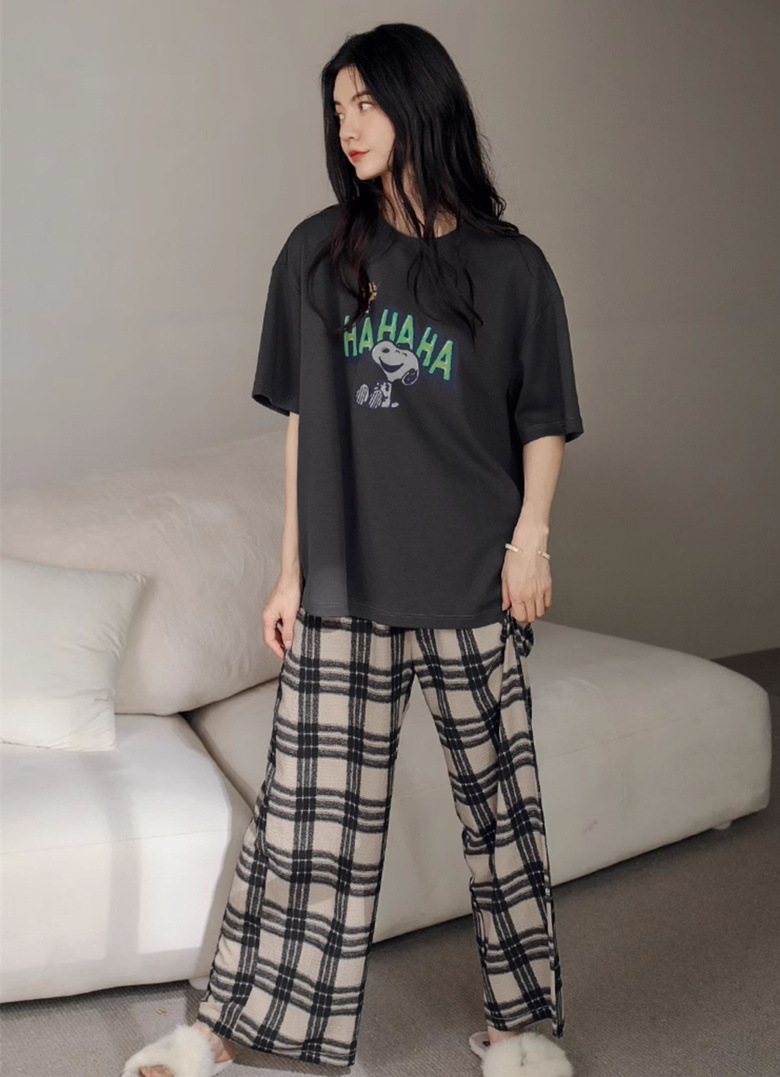 • 쇼트 롱 다크 그레이 스누피 다크 그레이 스트레이트 팬츠