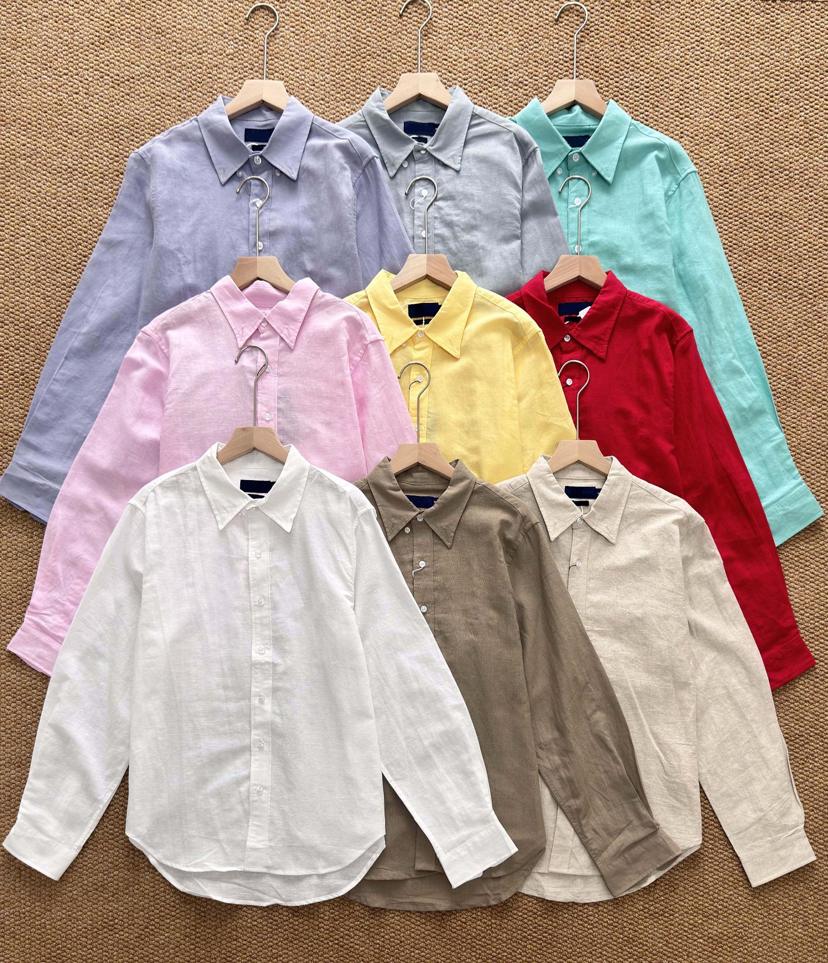 11색 아메리칸 클래식 버전 포니 자수 코튼 린넨 셔츠 남성과 여성을 위한 다용도 심플 데일리 탑