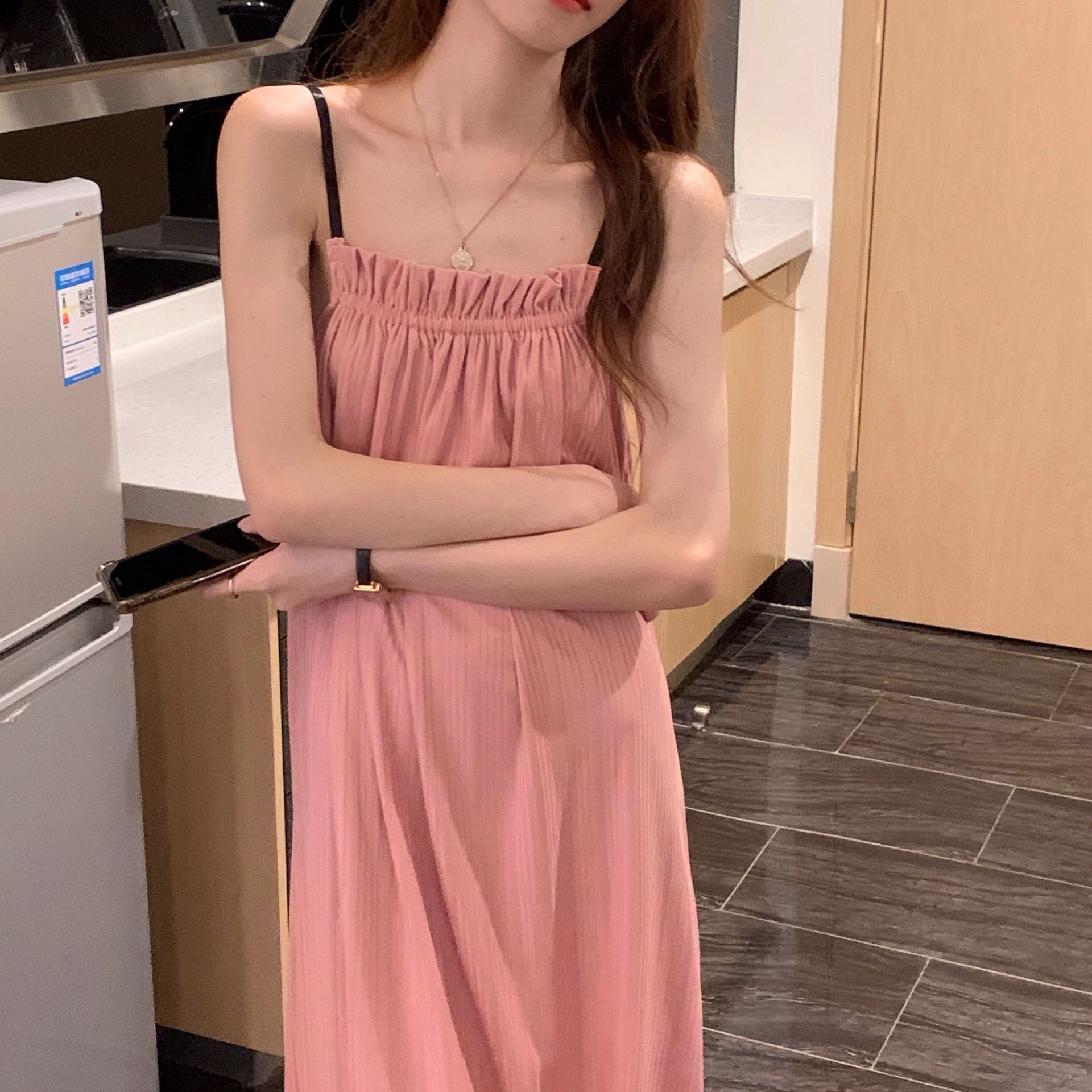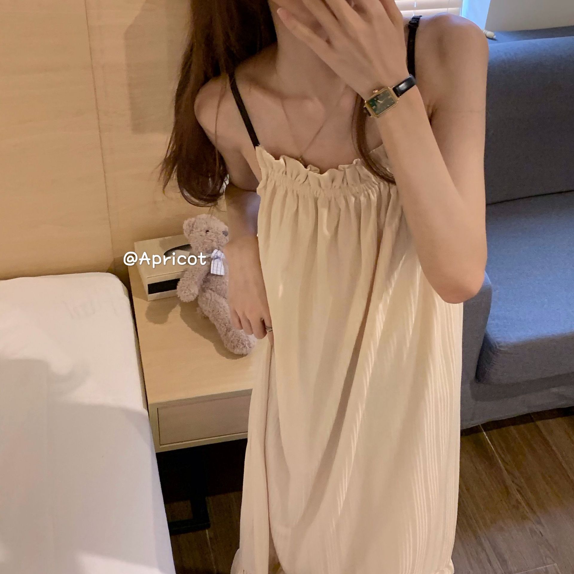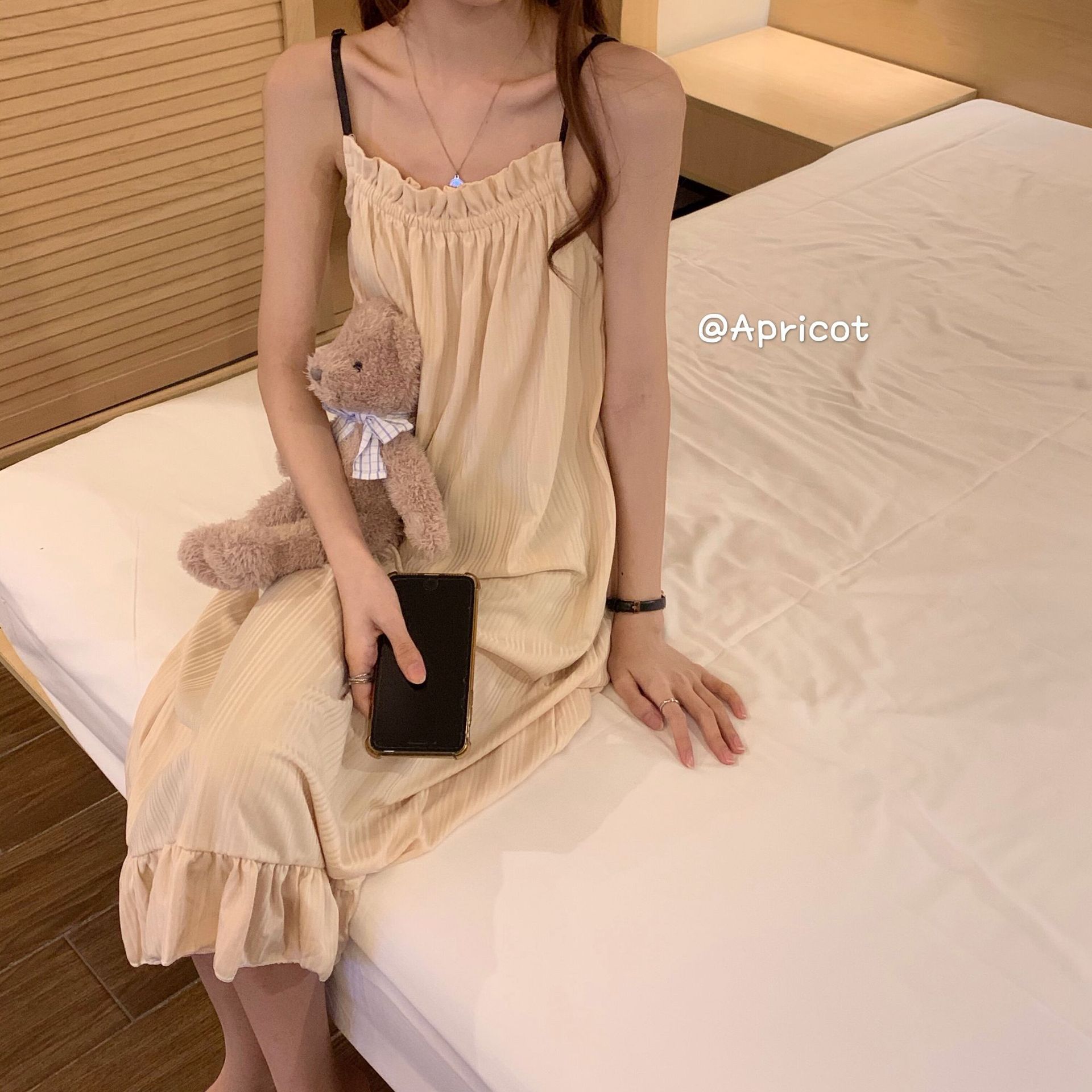 여성용 핑크 서스펜더 잠옷, 여름용 달콤한 한국 스타일 밀크 실크 핏 스트라이프 잠옷, 여성용 홈웨어, 드롭쉬핑스토어 가기