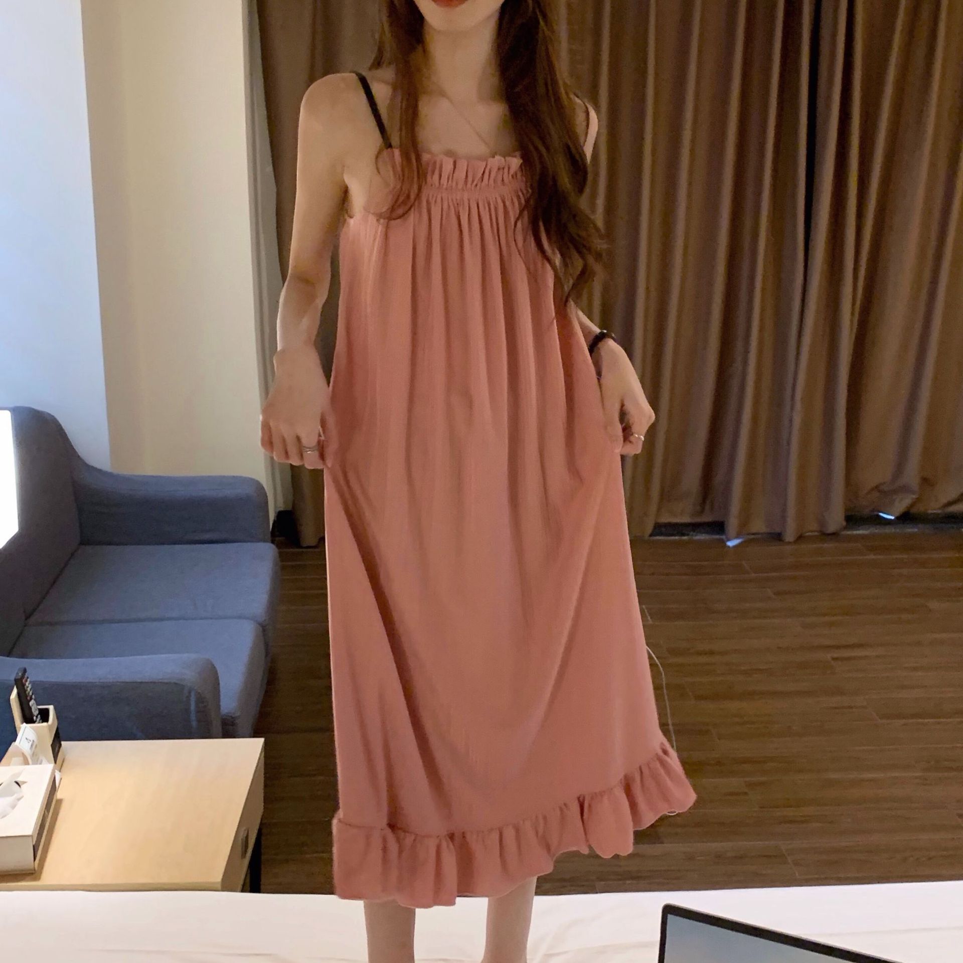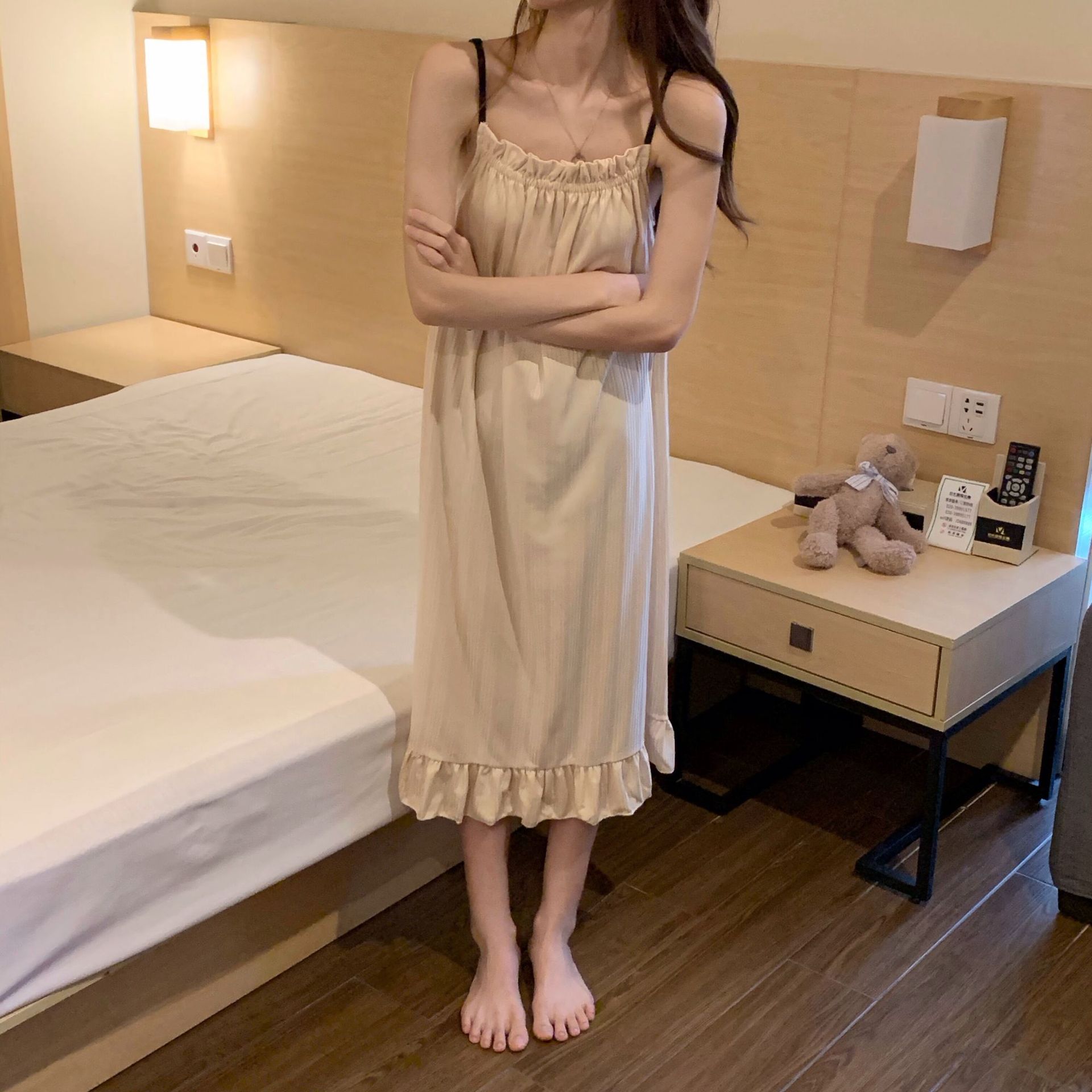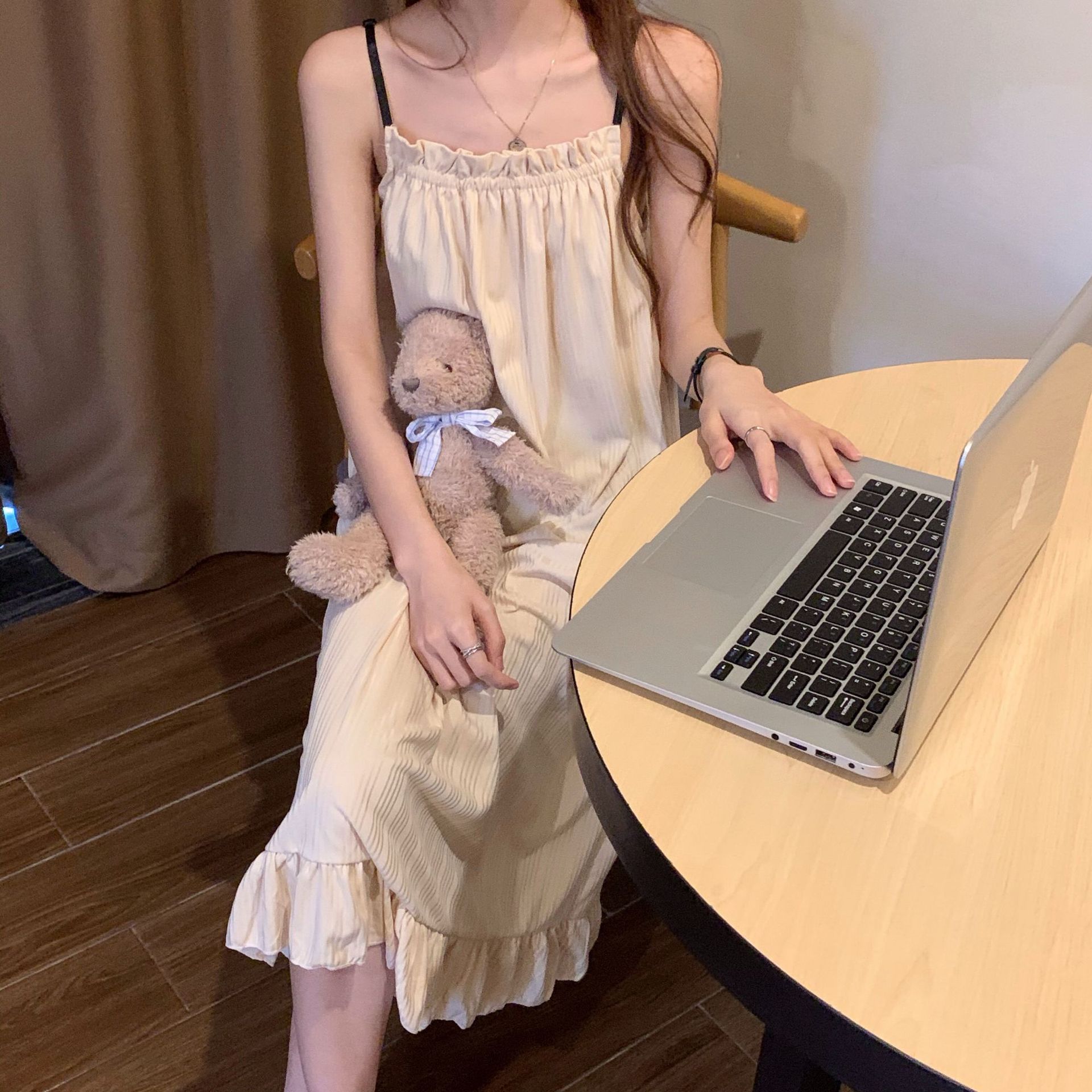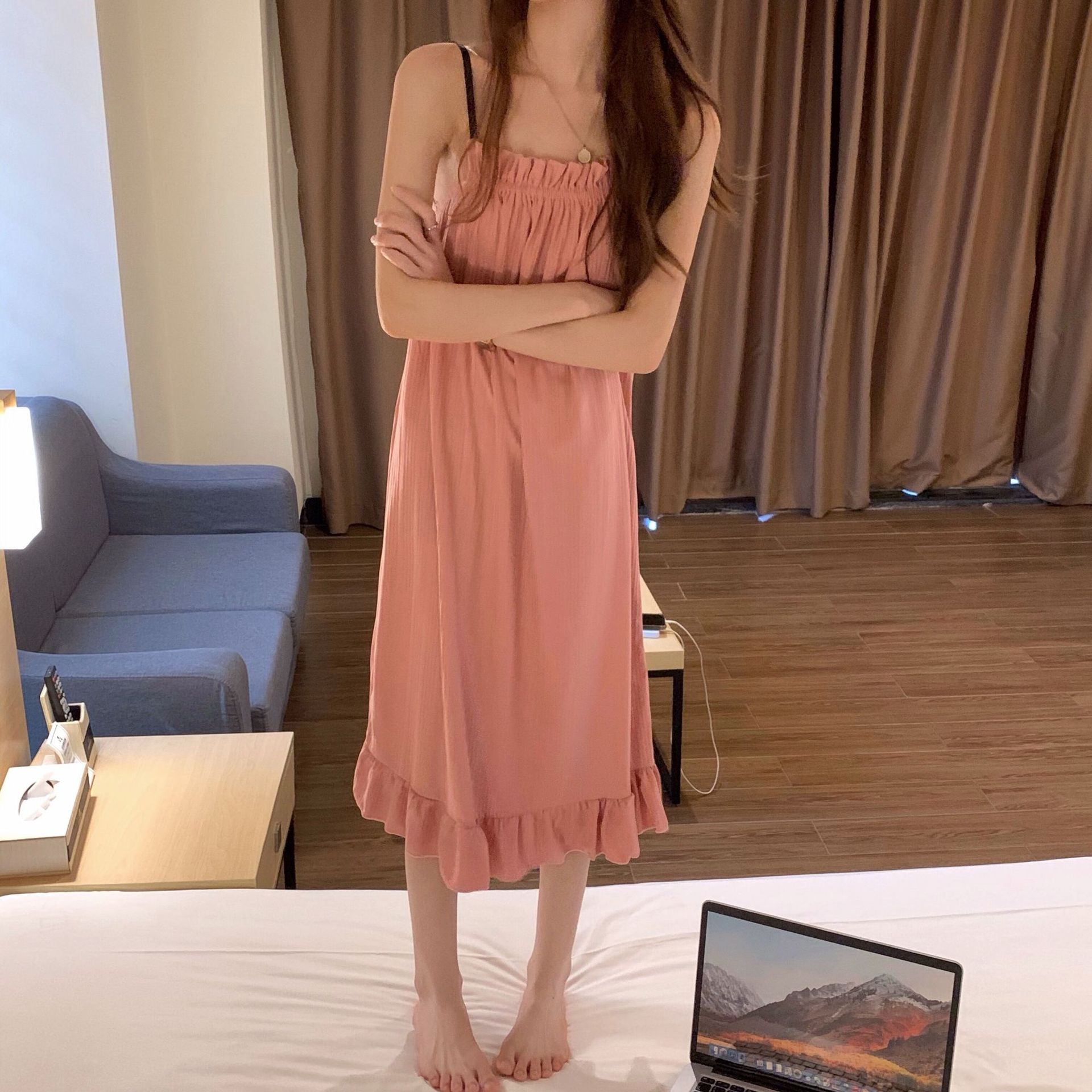 여성용 핑크 서스펜더 잠옷, 여름용 달콤한 한국 스타일 밀크 실크 핏 스트라이프 잠옷, 여성용 홈웨어, 드롭쉬핑스토어 가기