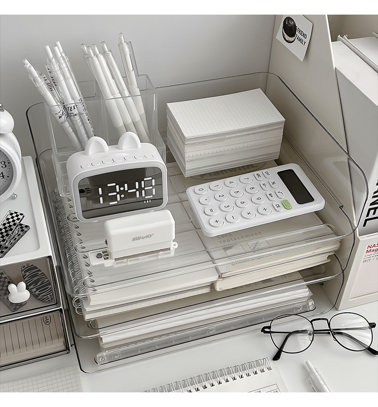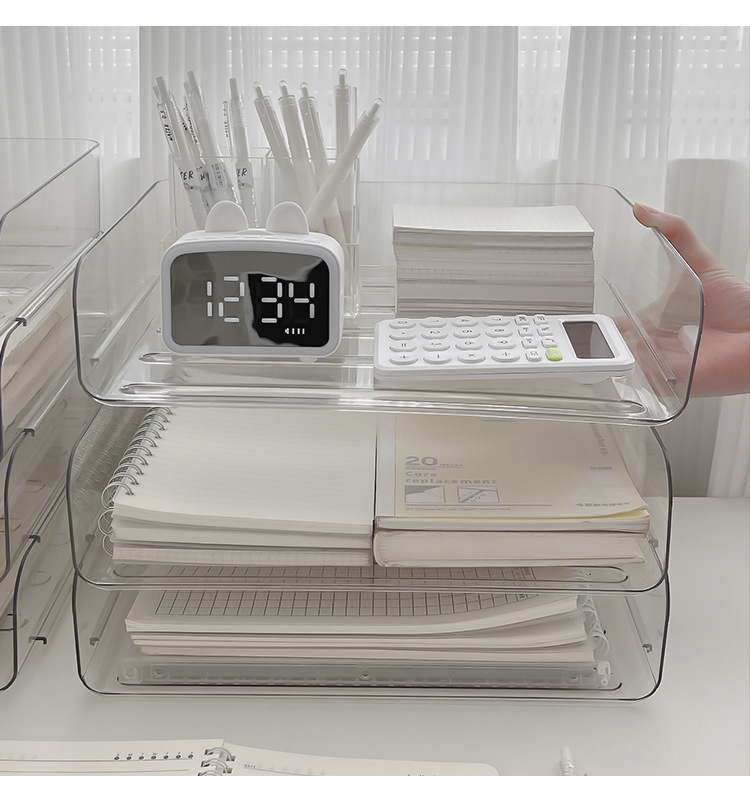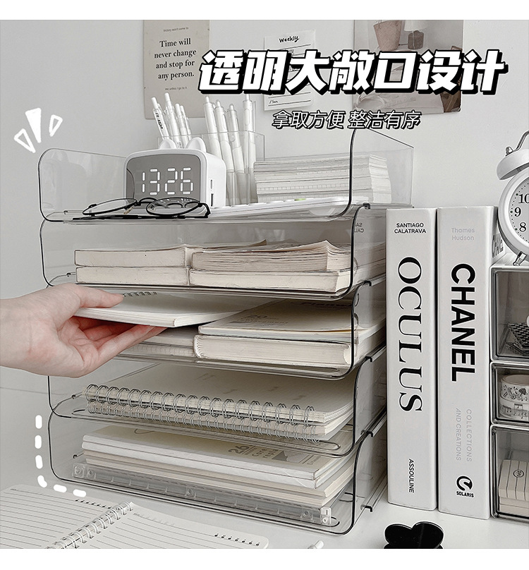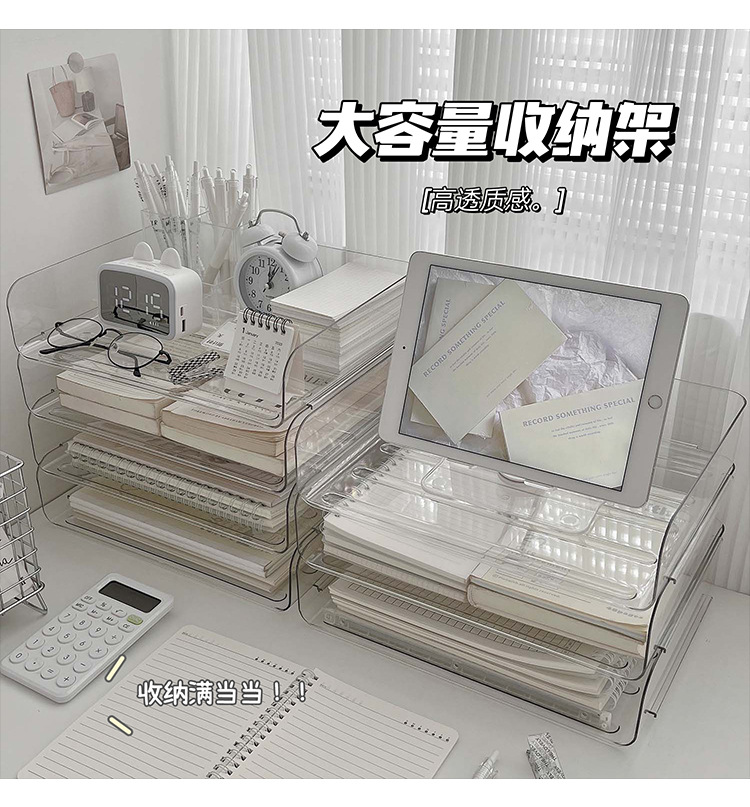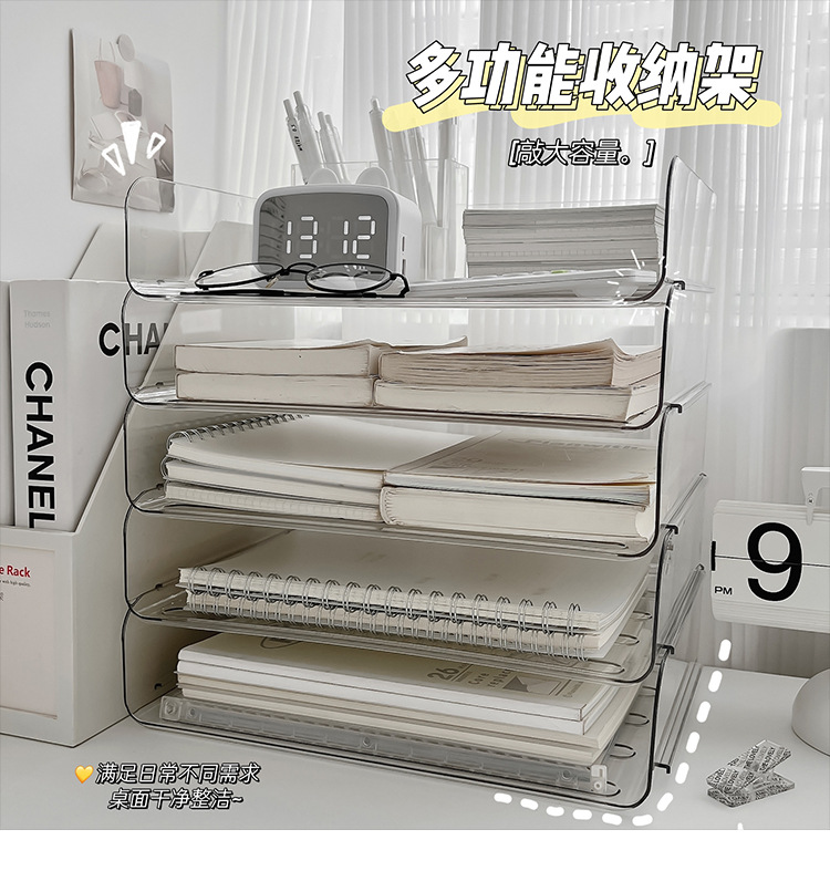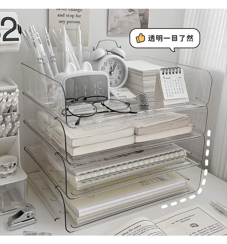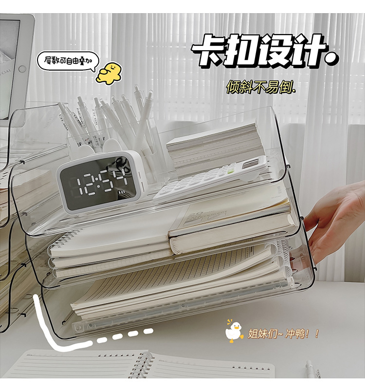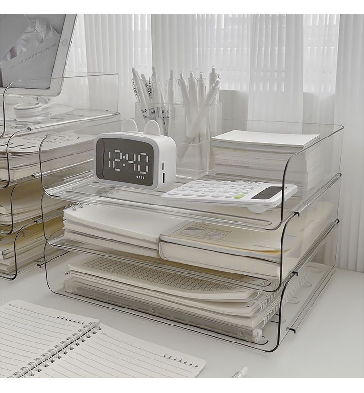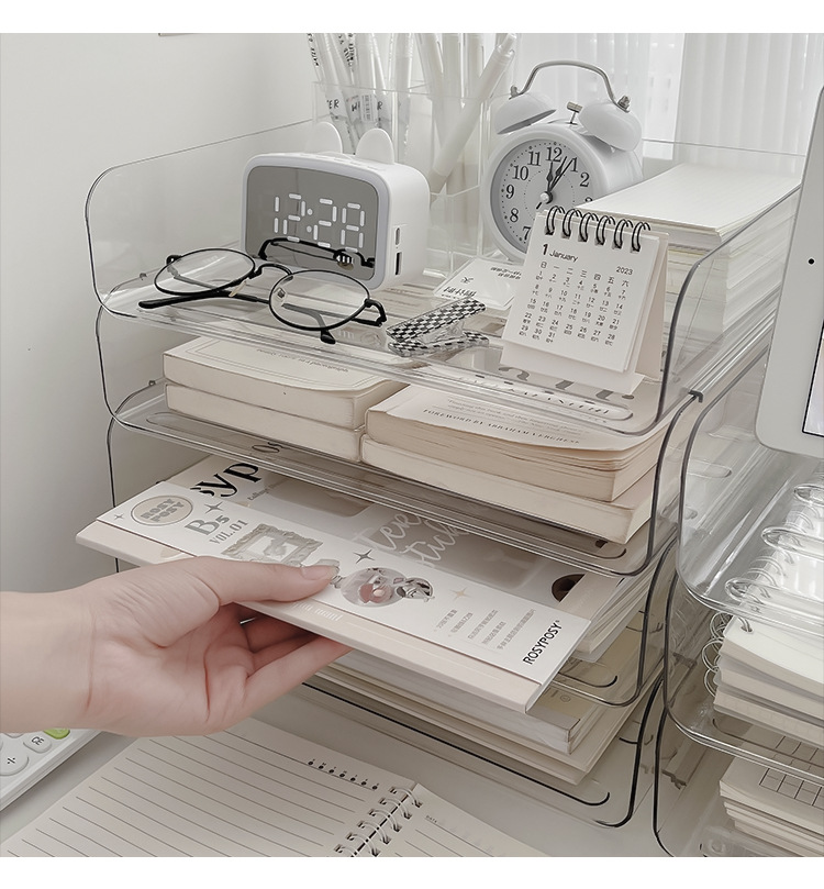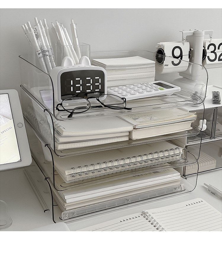 데스크톱 투명 파일 스토리지 랙 사무실 쌓을 수있는 책장 a4 용지 멀티 레이어 데이터 파일 박스 스토리지 선반