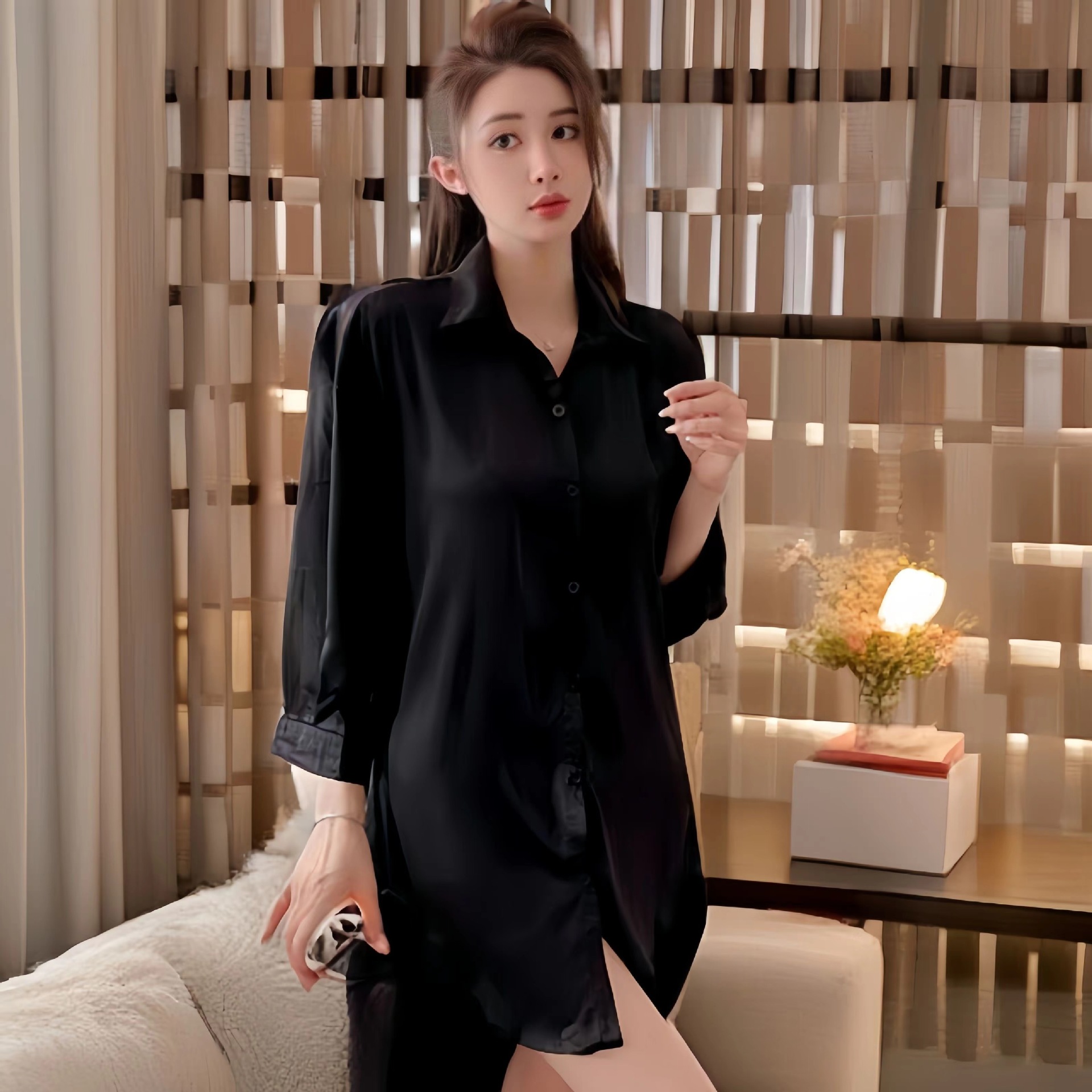 취지아오 남친 스타일 셔츠, 섹시한 빅사이즈 잠옷, 순수한 욕망 여성 잠옷, 홈웨어 세트 A32 홈웨어스토어 가기