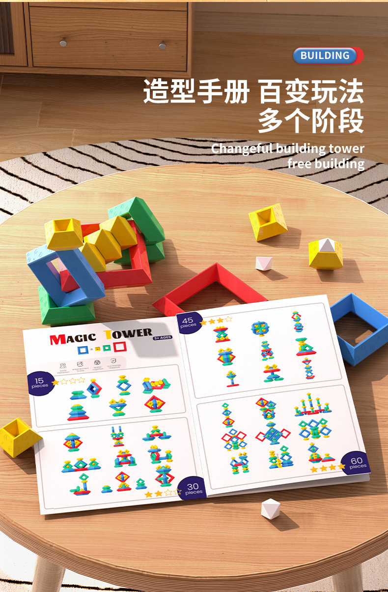 피라미드 빌딩 블록 매직 타워 두뇌 이동 퍼즐 다기능 과립 어린이 소년 소녀 아기 조립 장난감 Lubanta스토어 가기