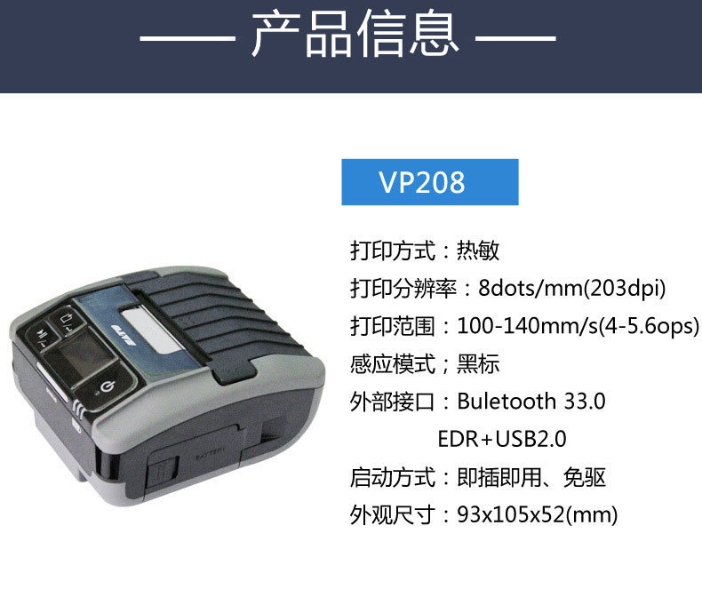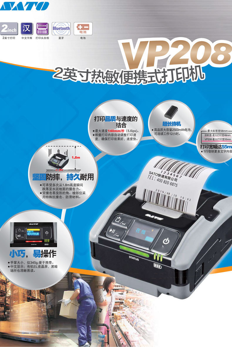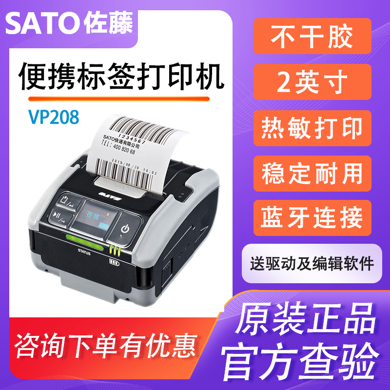 SATO Sato VP208 휴대용 바코드 라벨 프린터 2 인치 전자 블루투스 연결 드라이브 프리 스티커스토어 가기