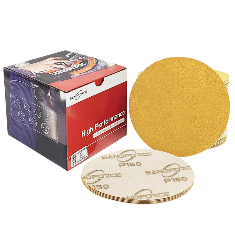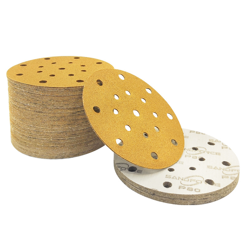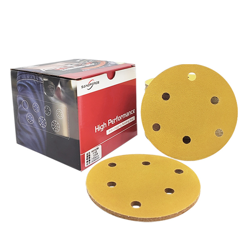 노란색 플록 사포 5인치 8홀 연마지 금속 연마 및 연마 건식 연삭 디스크 자체 접착식 벨벳 노란색 사포