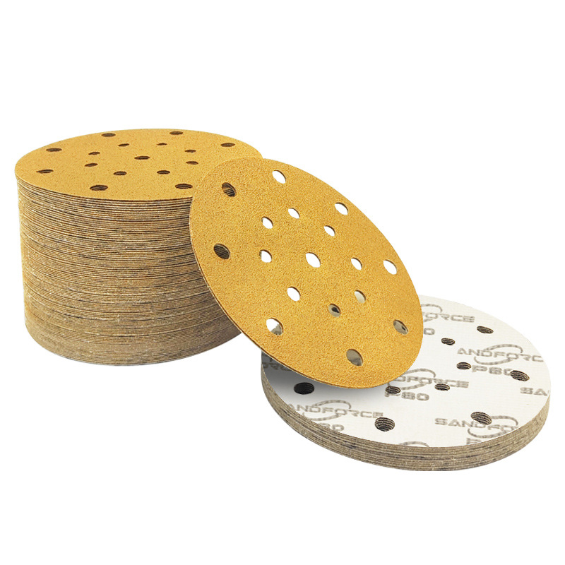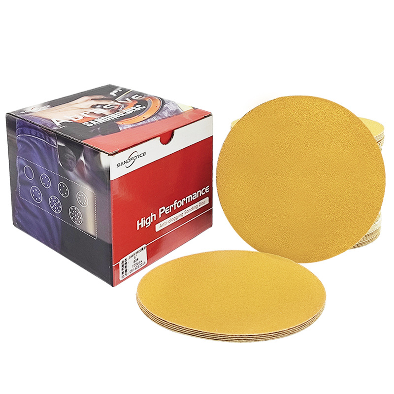 노란색 플록 사포 5인치 8홀 연마지 금속 연마 및 연마 건식 연삭 디스크 자체 접착식 벨벳 노란색 사포스토어 가기