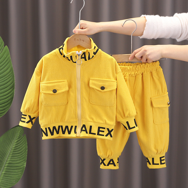 • 노란색 알파벳 코듀로이 두 조각 세트