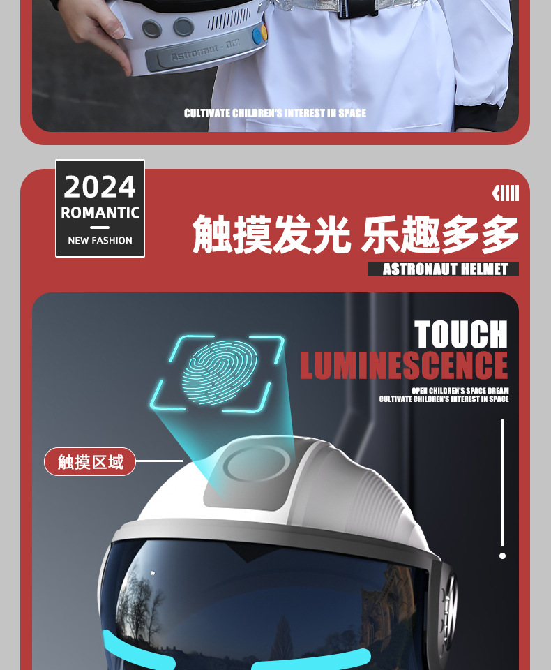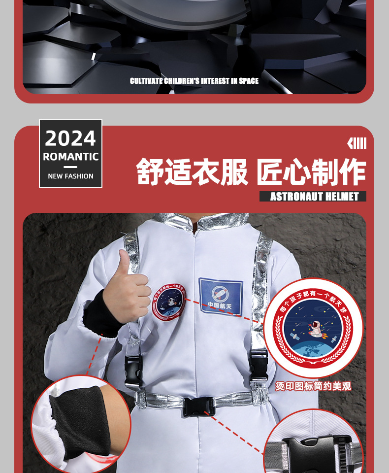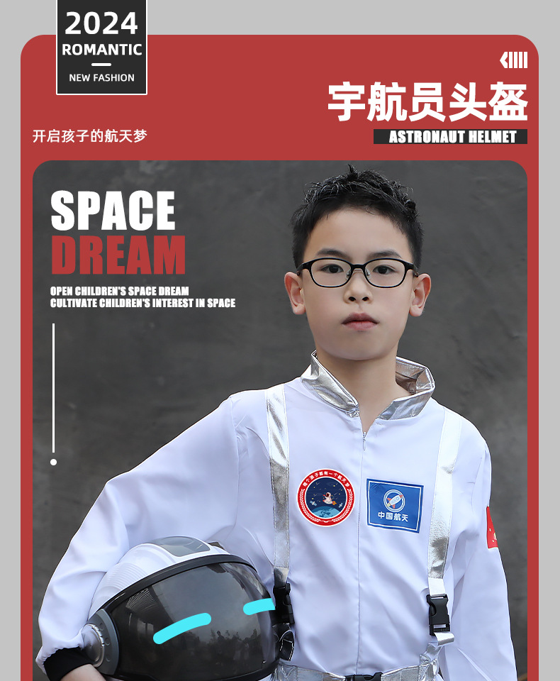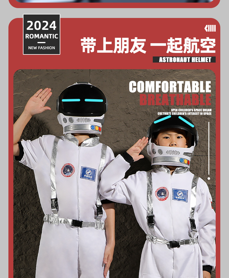 국경 간 어린이 여름 반팔 양복 우주 비행복 캠퍼스 공연 의류 터치 제어 가능한 조명 헬멧 도매