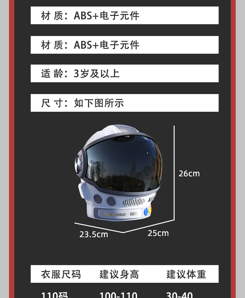 • 우주 헬멧(모든 사이즈에 적합)
