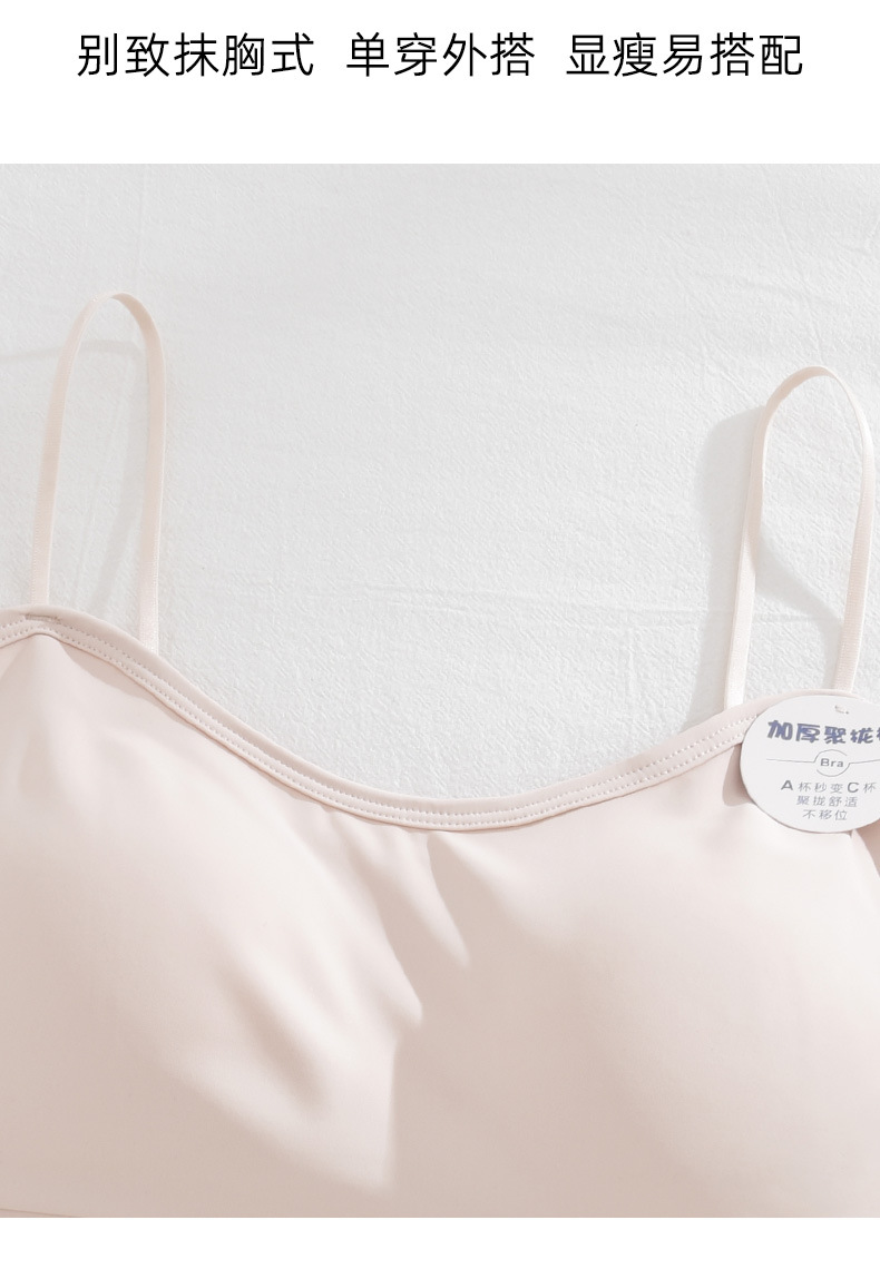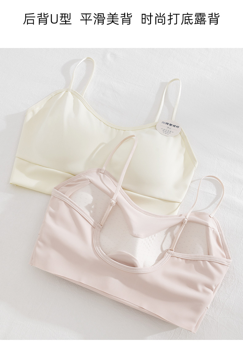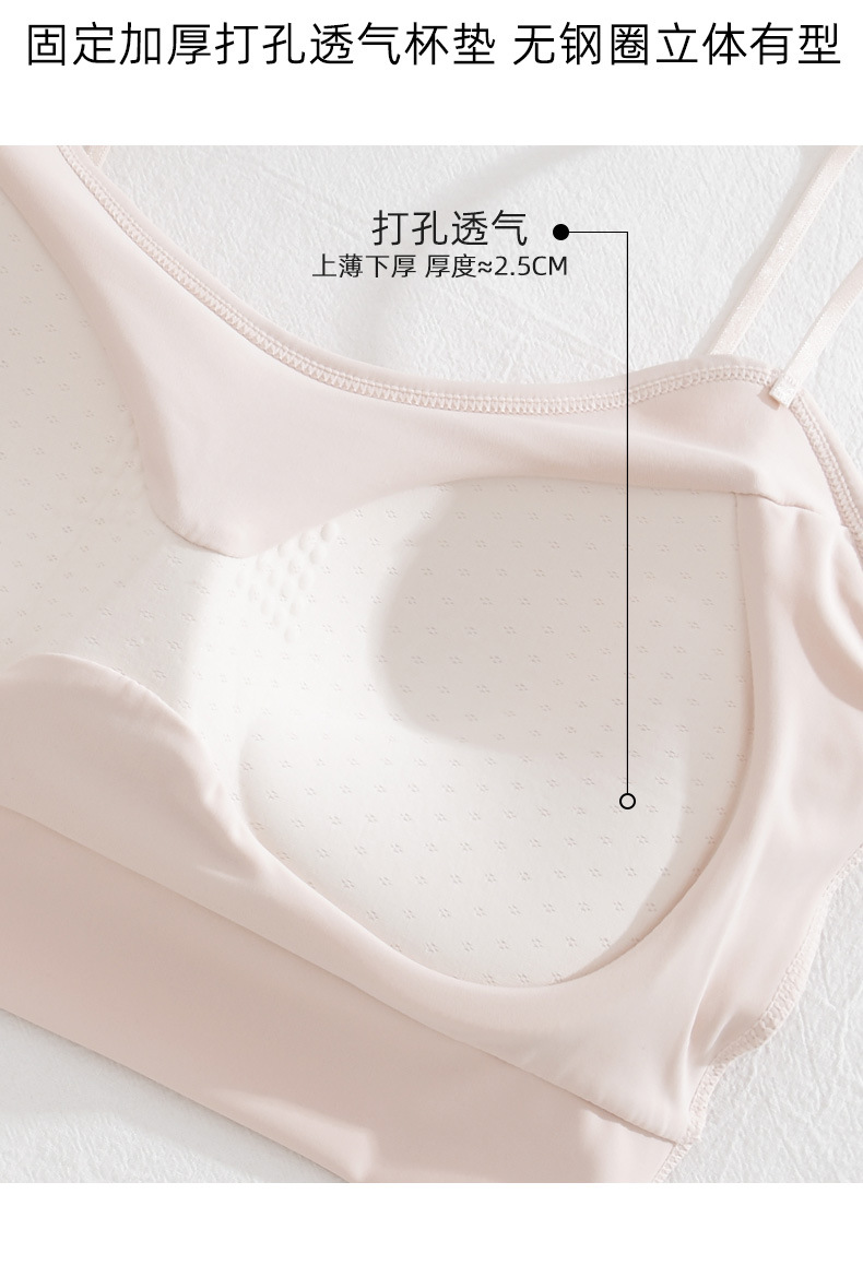 여름 아이스 실크 아름다운 백 브라 속옷 여성용 스틸 링 작은 가슴 벨트 가슴 패드 내부 조끼 고정 원피스 컵 랩 가슴