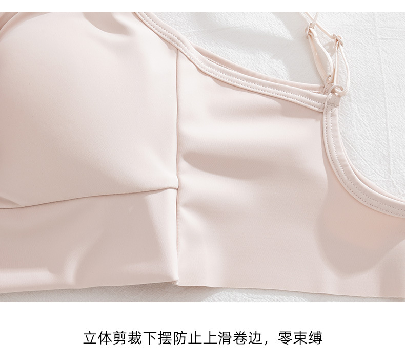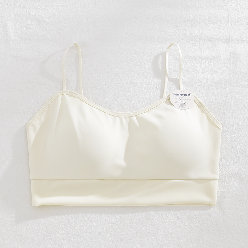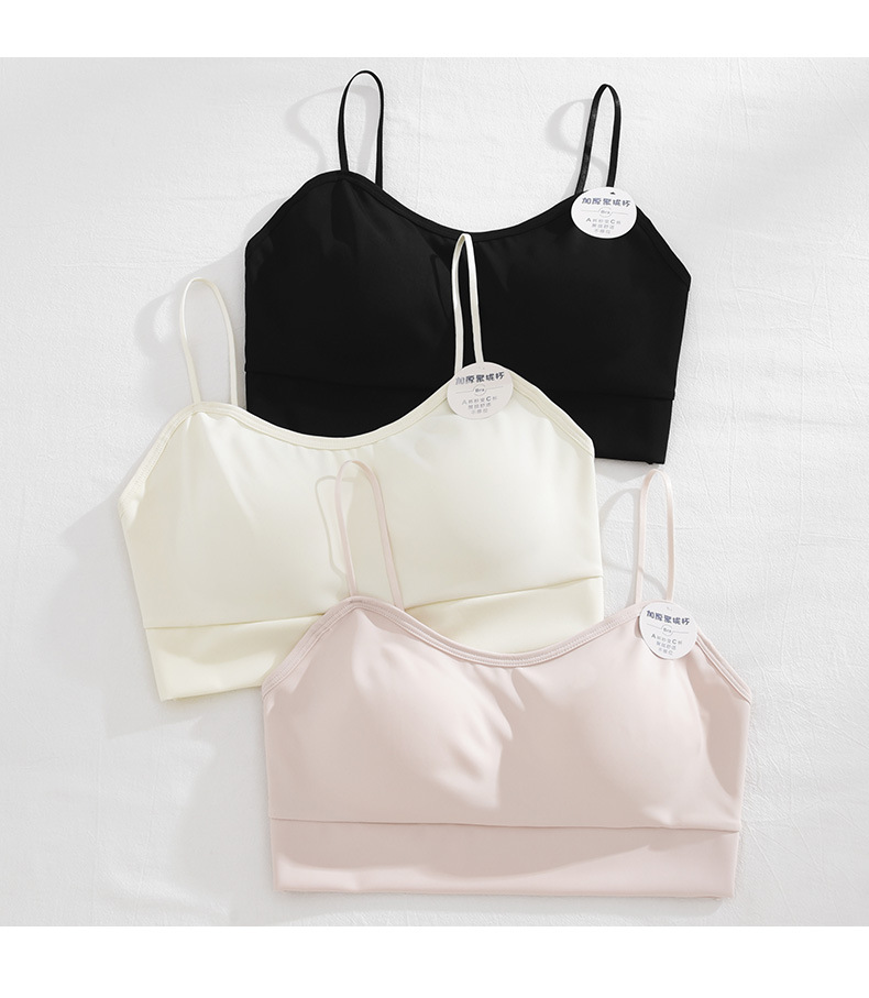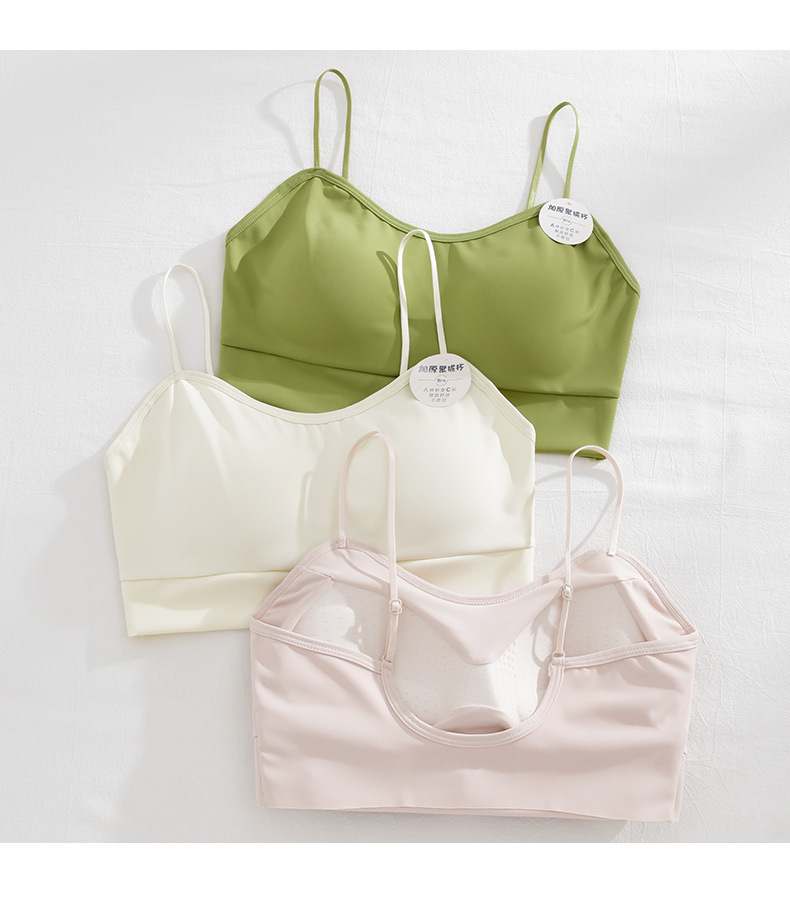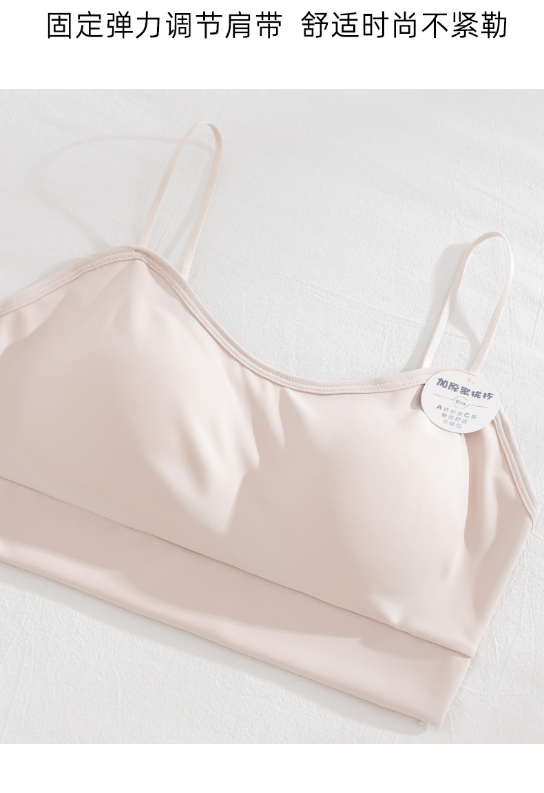 여름 아이스 실크 아름다운 백 브라 속옷 여성용 스틸 링 작은 가슴 벨트 가슴 패드 내부 조끼 고정 원피스 컵 랩 가슴