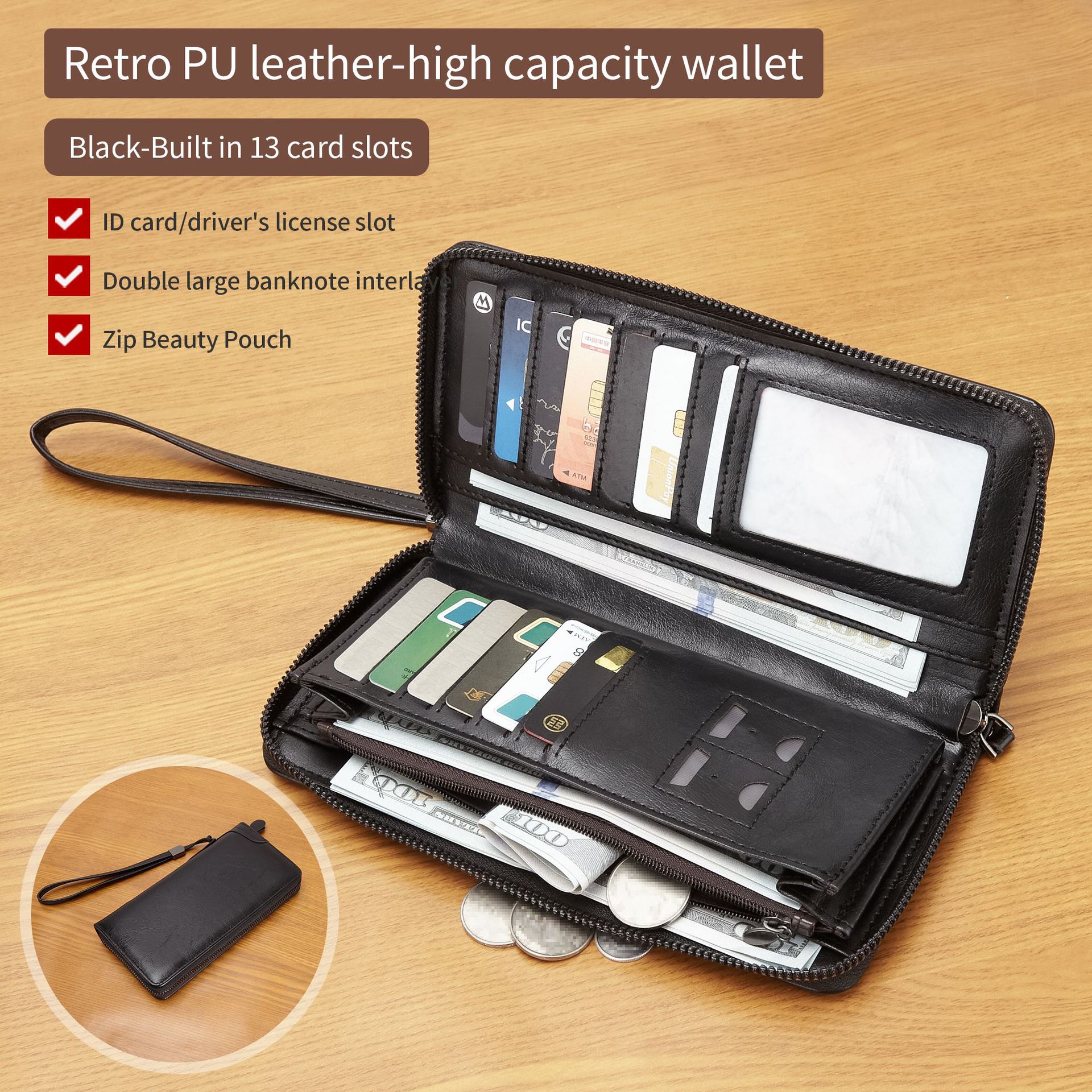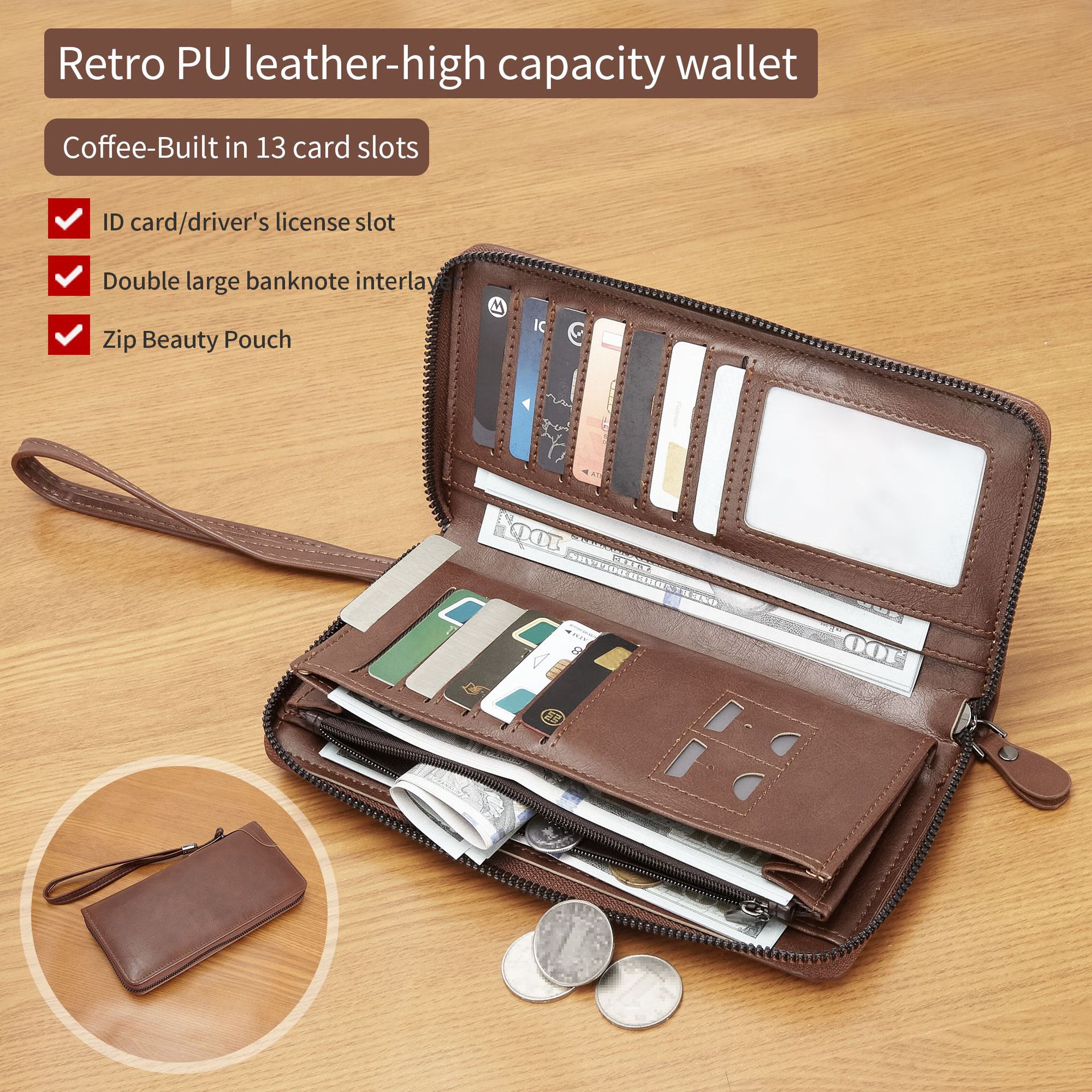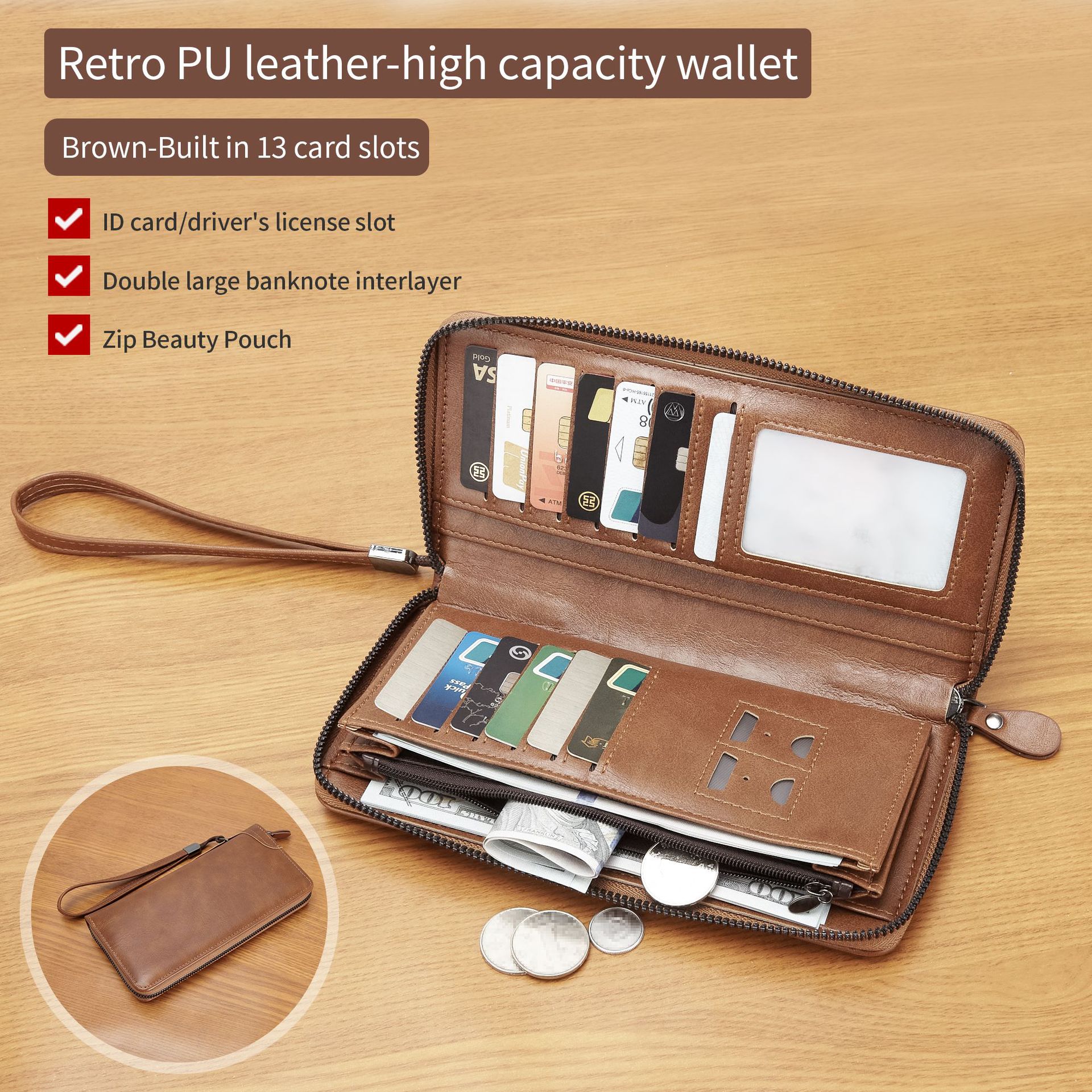 남성 지갑 RFID 도난 방지 브러시 신용 카드 가방 다기능 긴 지퍼 지갑 대용량 여행 지갑