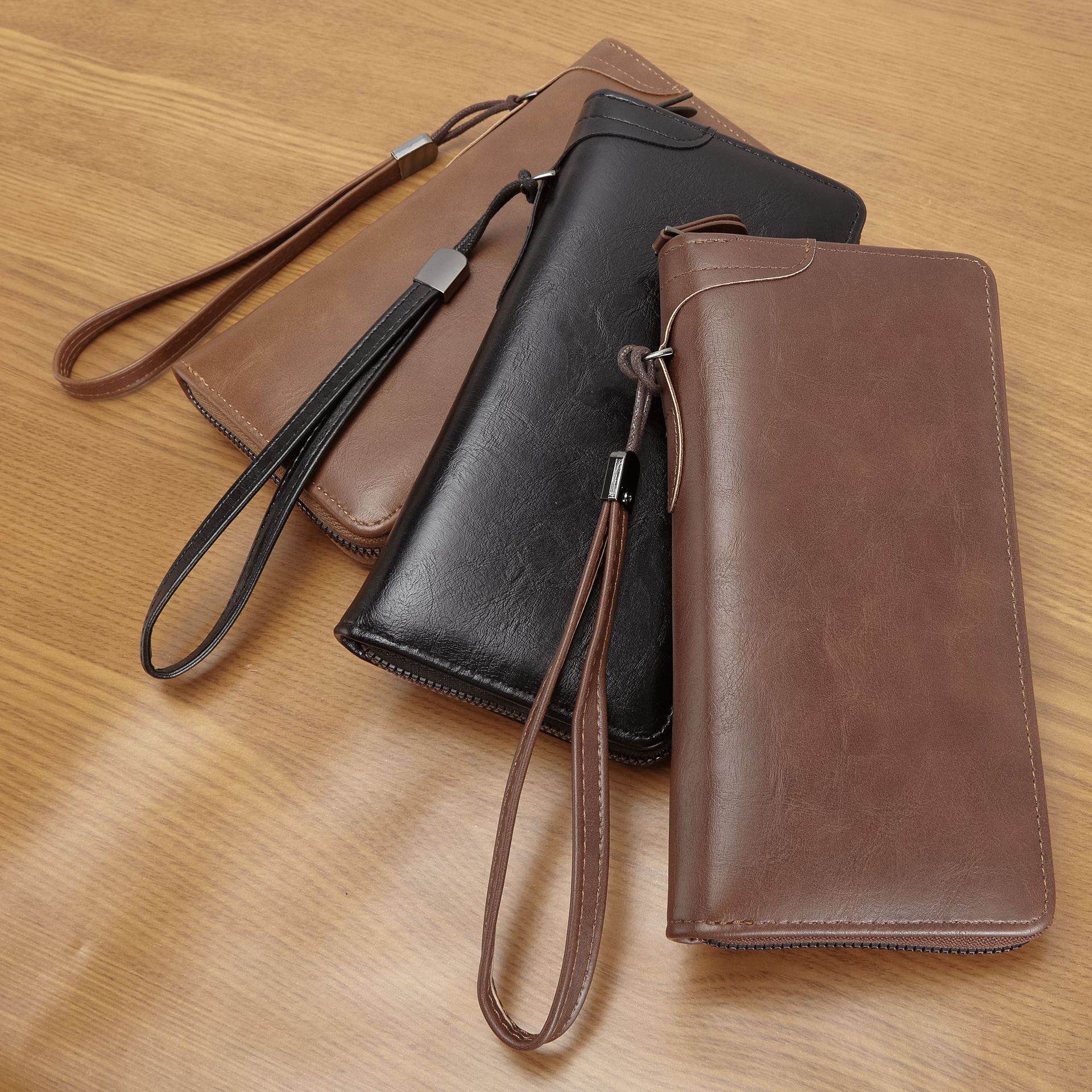 남성 지갑 RFID 도난 방지 브러시 신용 카드 가방 다기능 긴 지퍼 지갑 대용량 여행 지갑스토어 가기