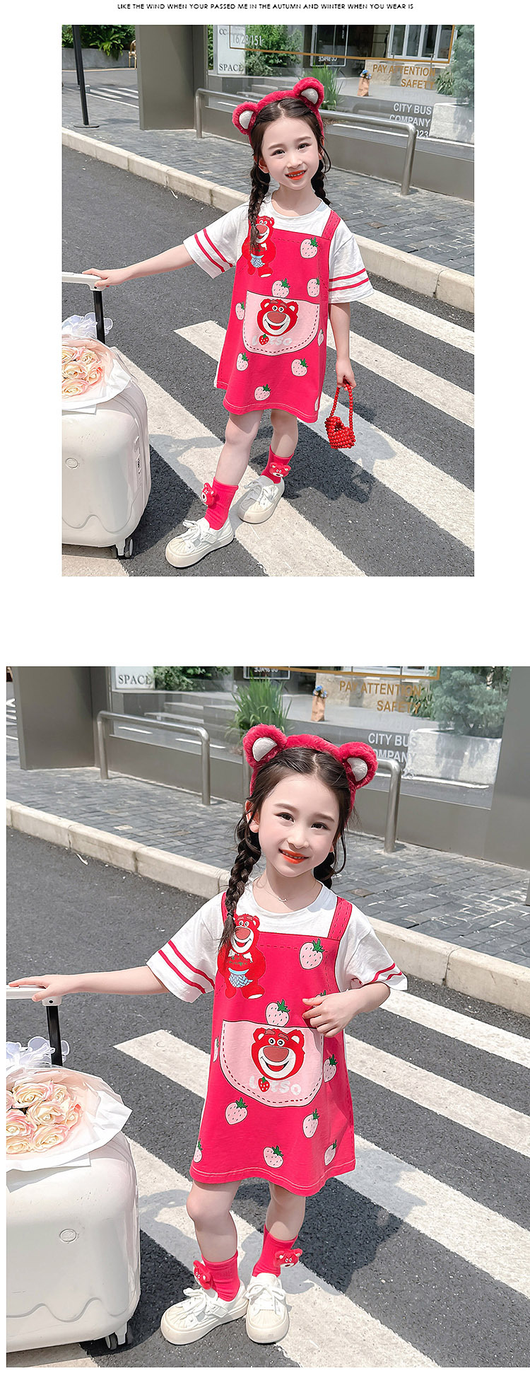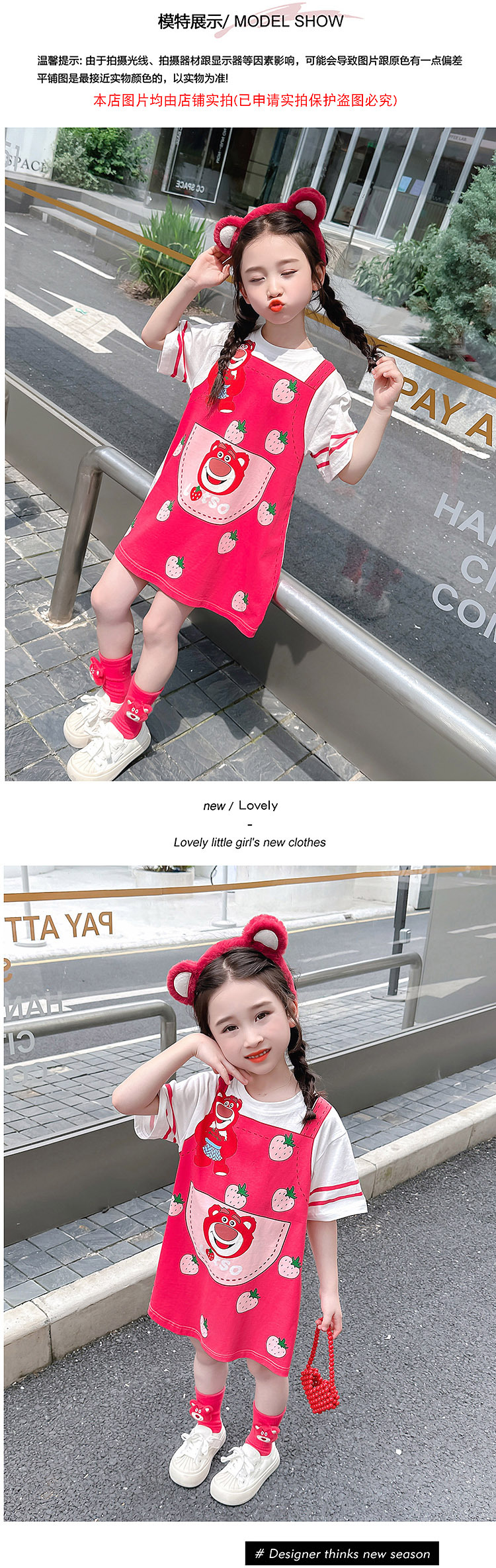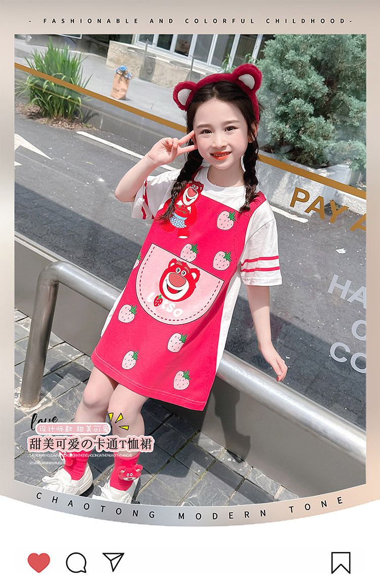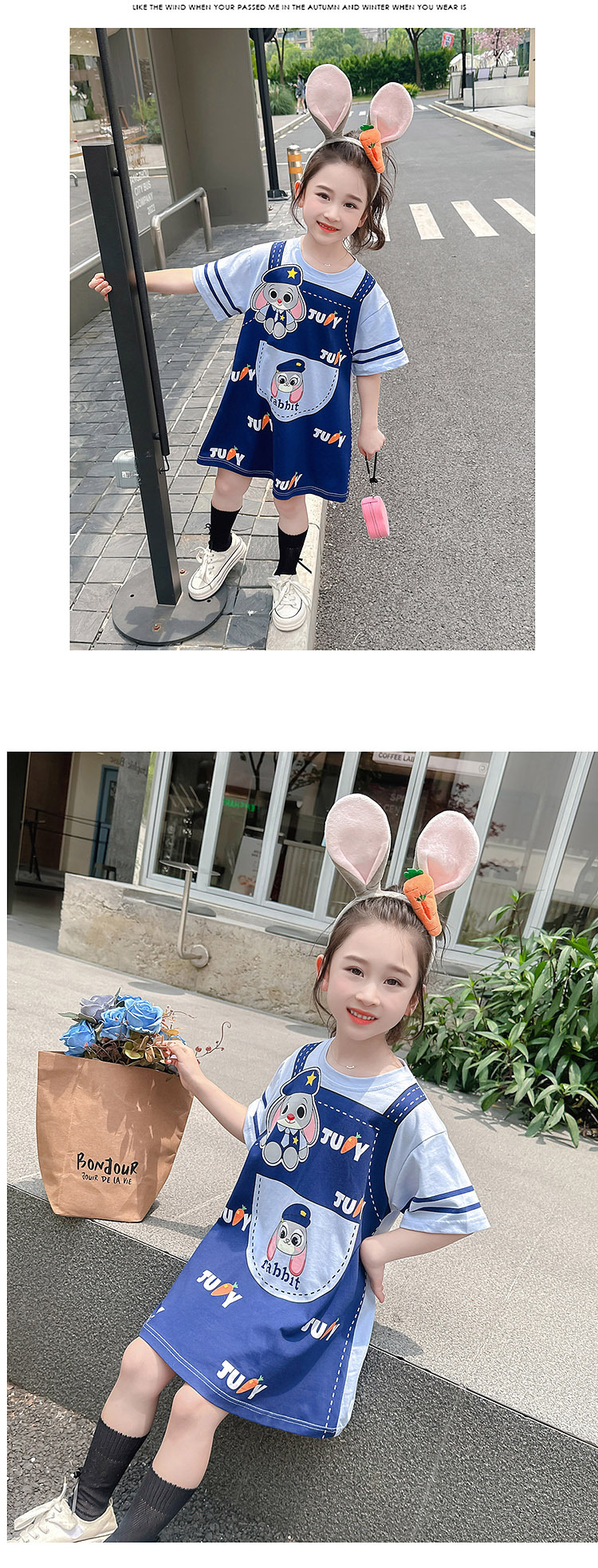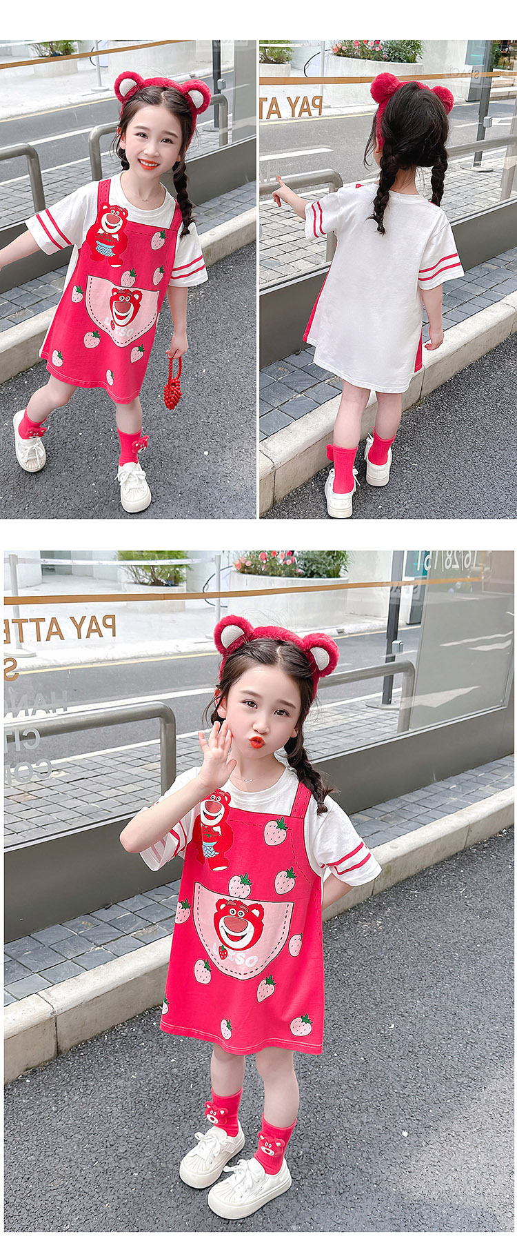 여름 반팔 소녀 딸기 곰 주디 토끼 귀여운 만화 원피스 가짜 투피스 티셔츠 스커트 새로운 올매치스토어 가기