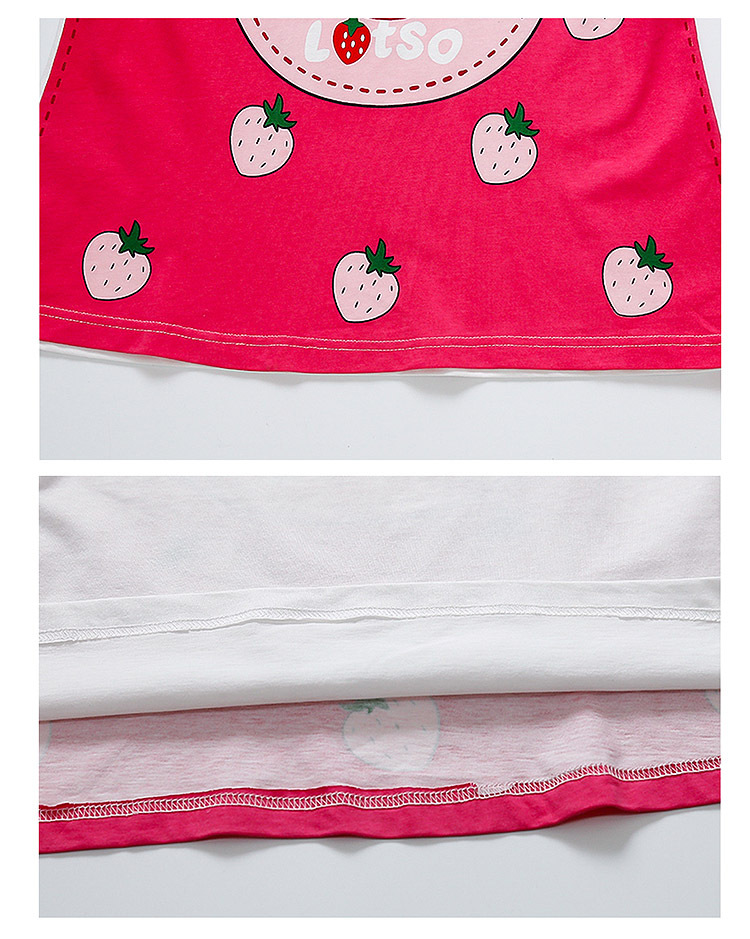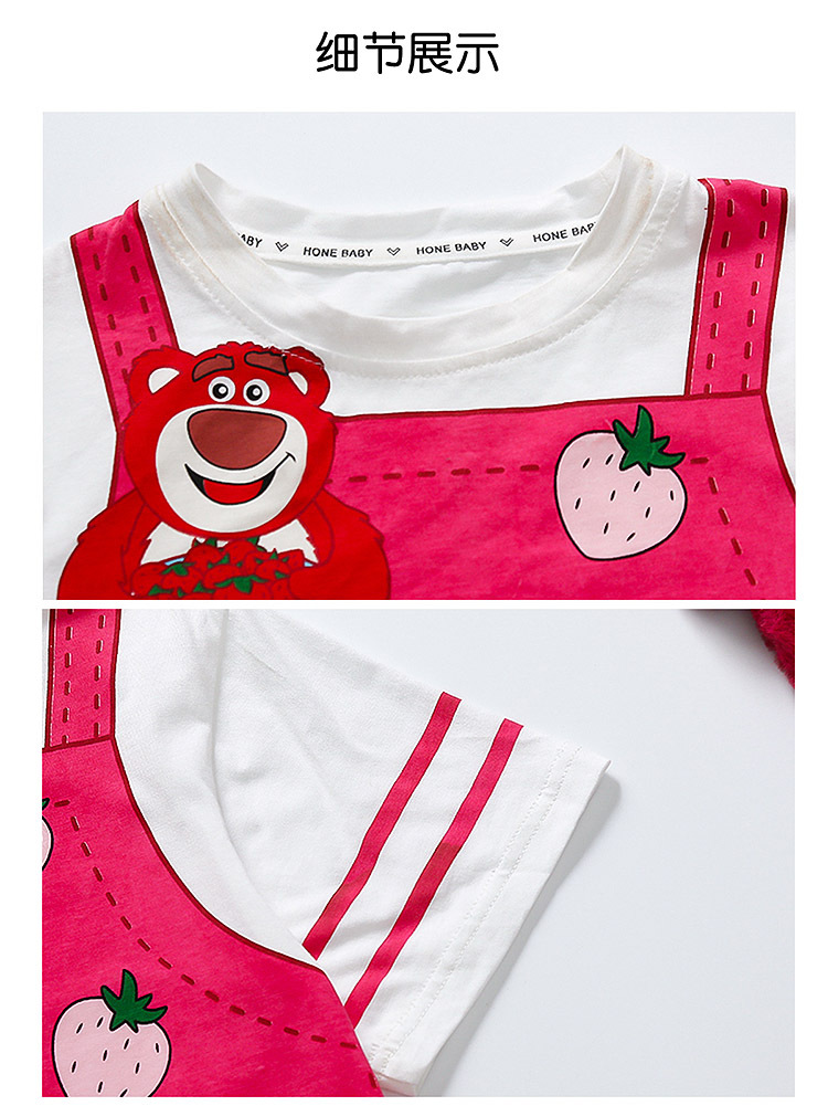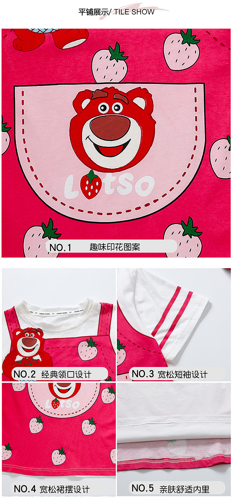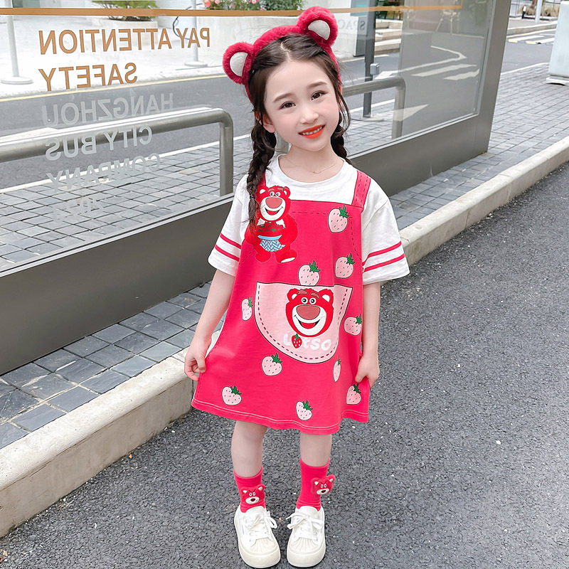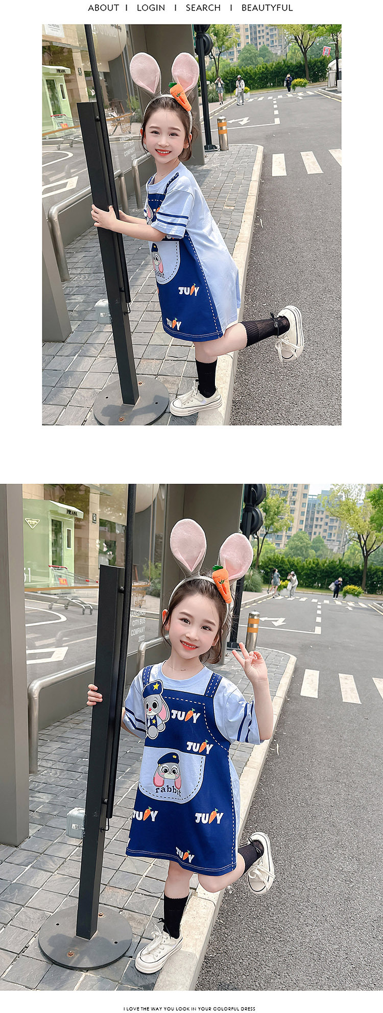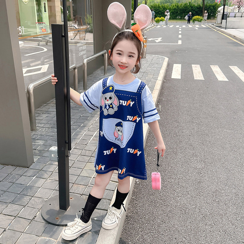 여름 반팔 소녀 딸기 곰 주디 토끼 귀여운 만화 원피스 가짜 투피스 티셔츠 스커트 새로운 올매치스토어 가기