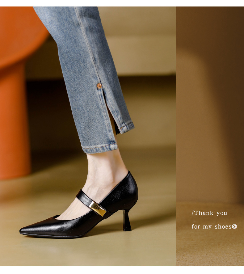 가벼운 럭셔리 향기로운 스타일 하이힐 여성의 봄과 여름 뾰족한 발가락 프렌치 양가죽 피곤하지 않은 발 버클 싱글 레이어 신발 여성의 얇은 힐 메리 제인