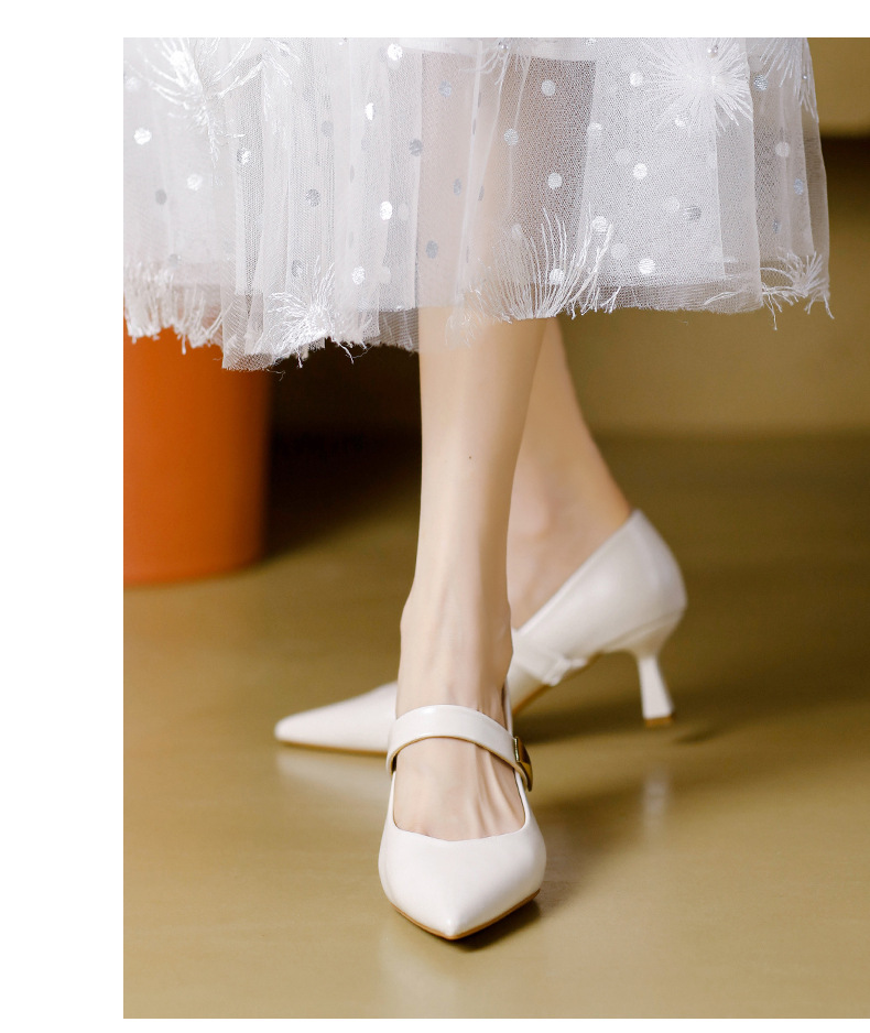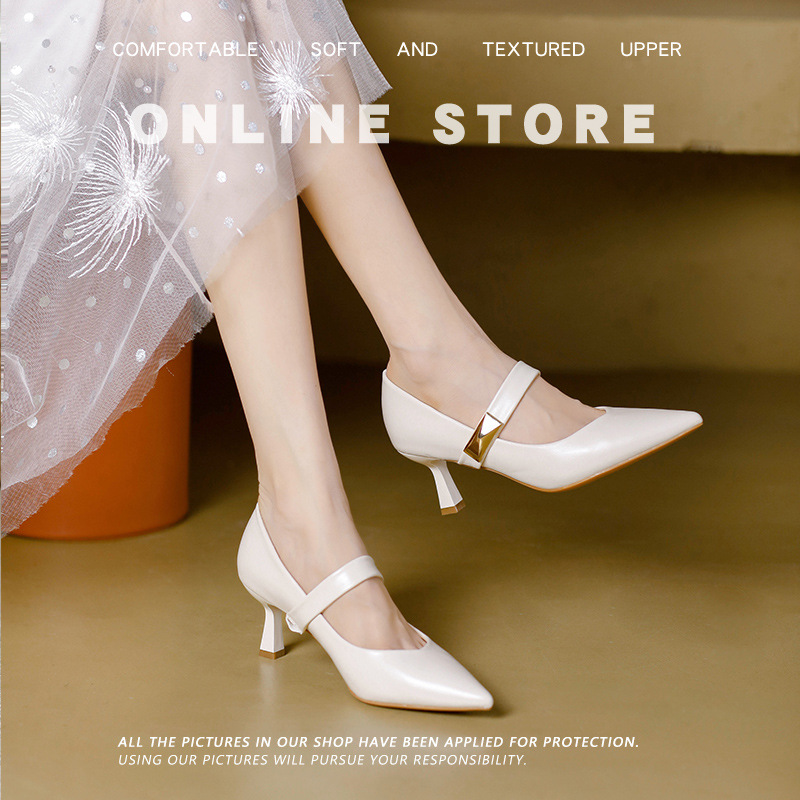 가벼운 럭셔리 향기로운 스타일 하이힐 여성의 봄과 여름 뾰족한 발가락 프렌치 양가죽 피곤하지 않은 발 버클 싱글 레이어 신발 여성의 얇은 힐 메리 제인스토어 가기