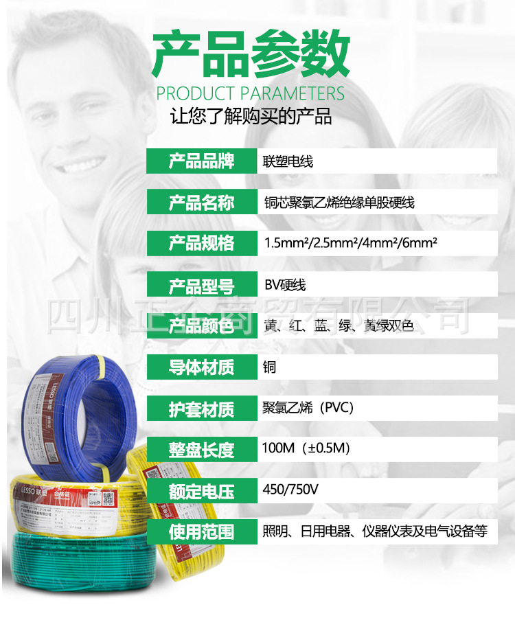 Liansu 국가 표준 와이어 구리 코어 BV 단일 스트랜드 하드 와이어 더블 컬러 레드 블루 옐로우 가정용 난연 절연 와이어