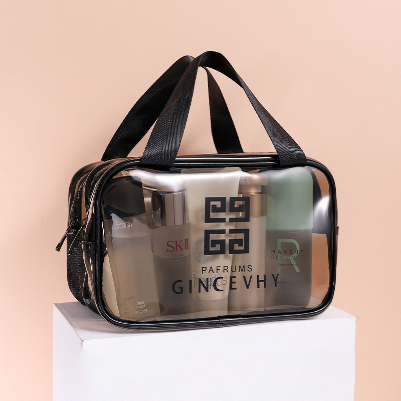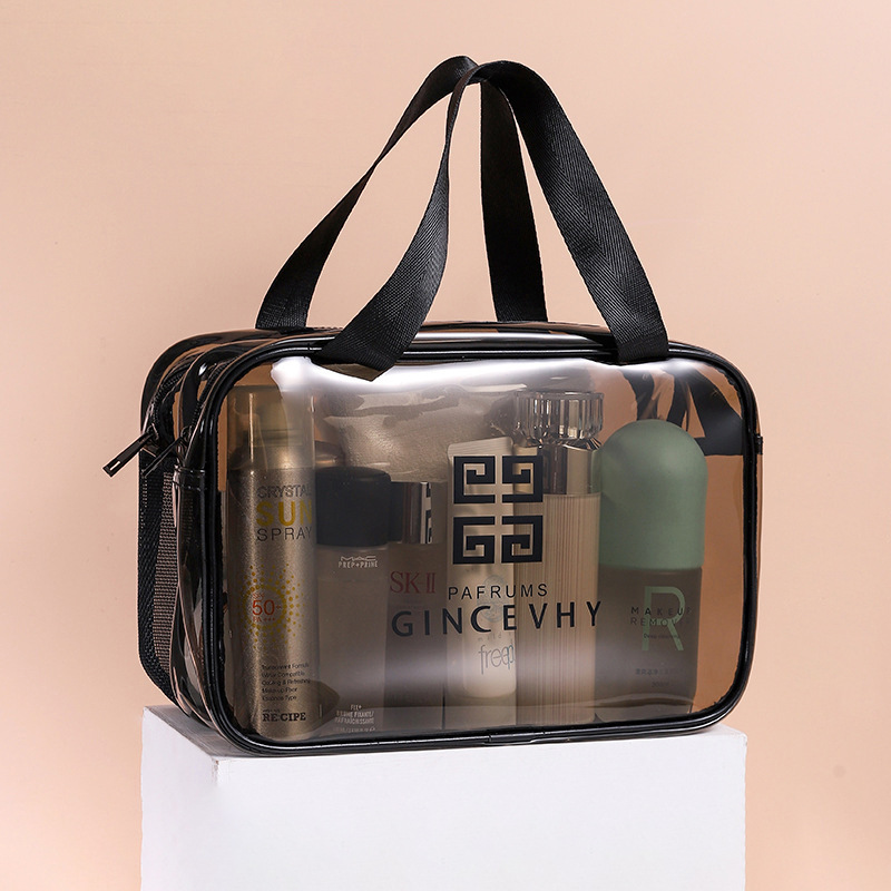 PVC 더블 레이어 화장품 가방 대용량 고급 감각 편리한 휴대용 화장품 보관 가방 방수 여행 세탁 가방