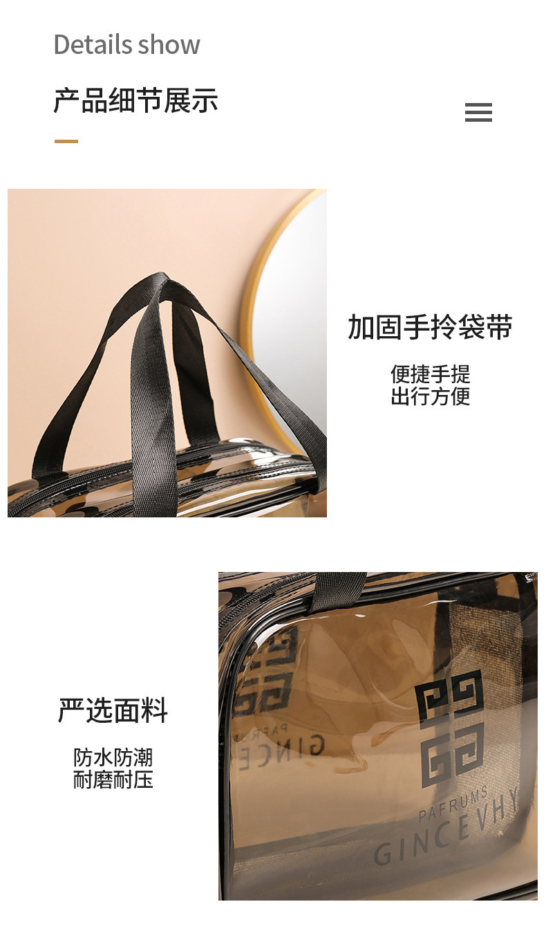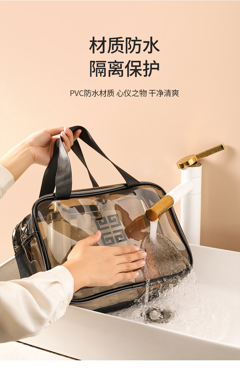 化妆品手提包PVC透明防水洗漱包 双层大容量收纳包旅行便捷化妆包
