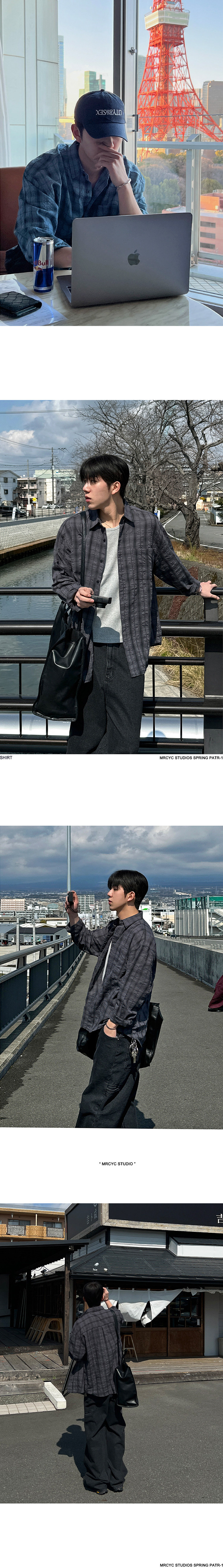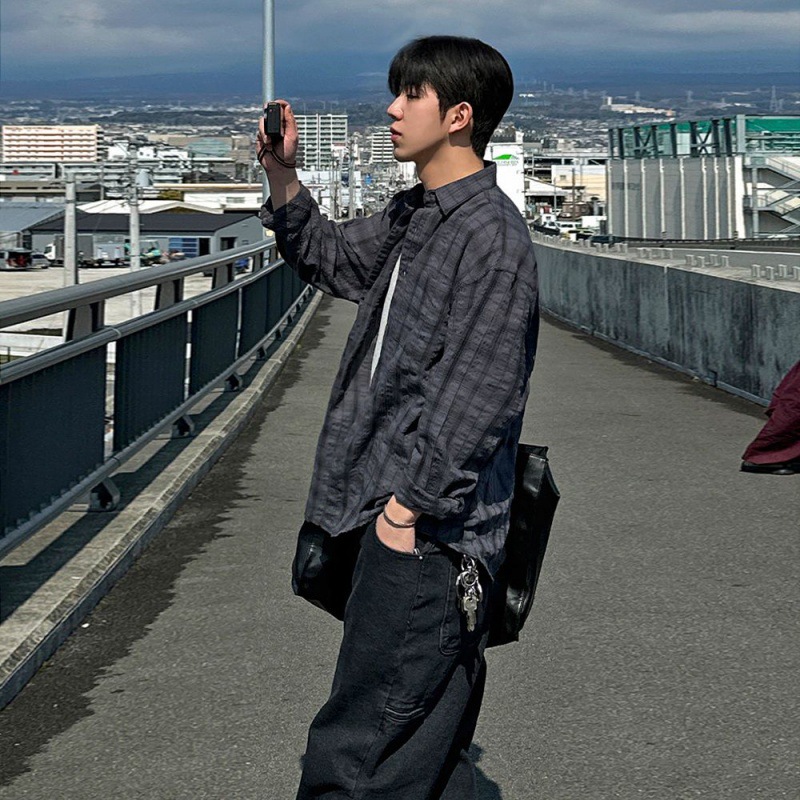 MYQ 게으른 스타일 체크 무늬 캐주얼 셔츠 남자 가을 느슨한 옷깃 탑 한국 스타일 트렌디 긴 소매 셔츠스토어 가기